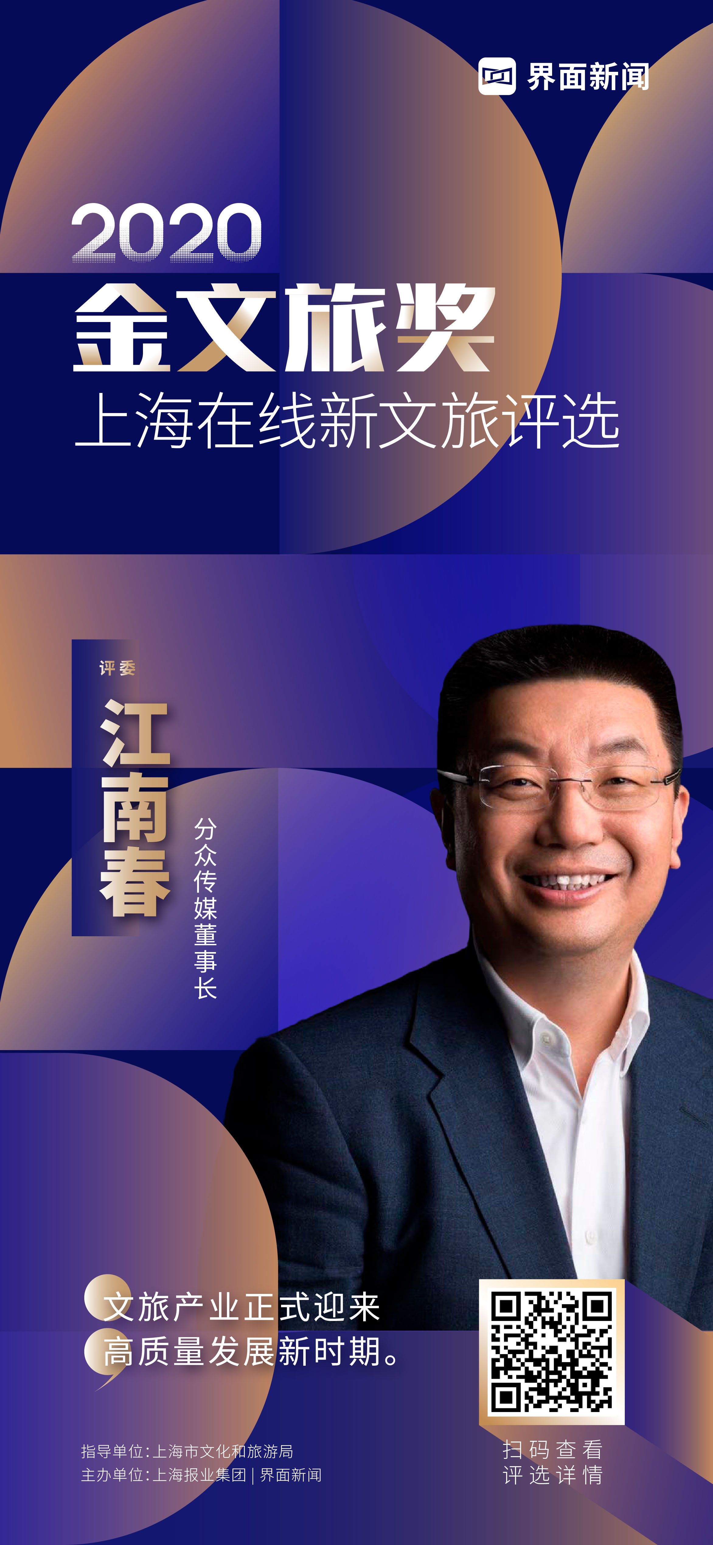 2020“金文旅獎(jiǎng)——上海在線(xiàn)新文旅評(píng)選”最終決選火熱進(jìn)行中,圍繞上海在線(xiàn)新文旅發(fā)展趨勢(shì),業(yè)內(nèi)專(zhuān)家給出犀利洞察與最新觀點(diǎn)。終榜即將揭曉,敬請(qǐng)期待!