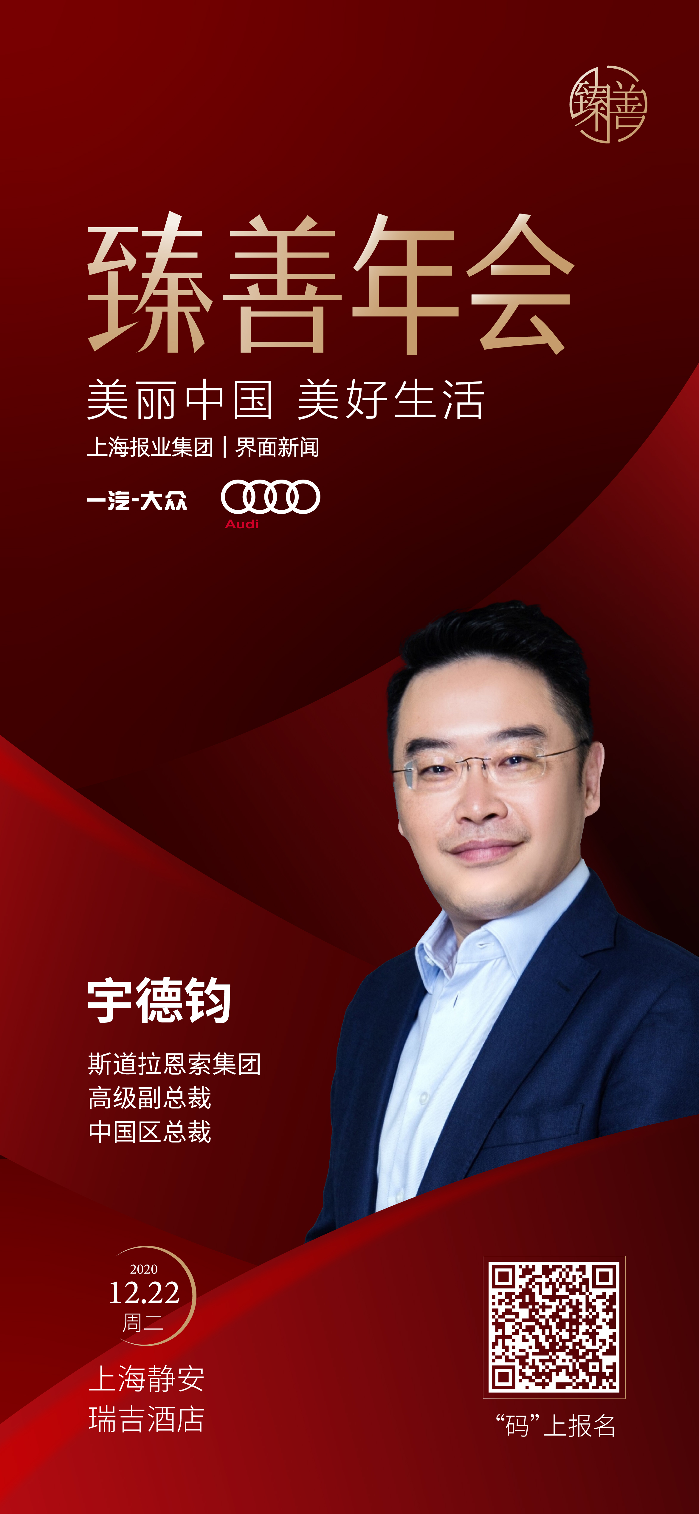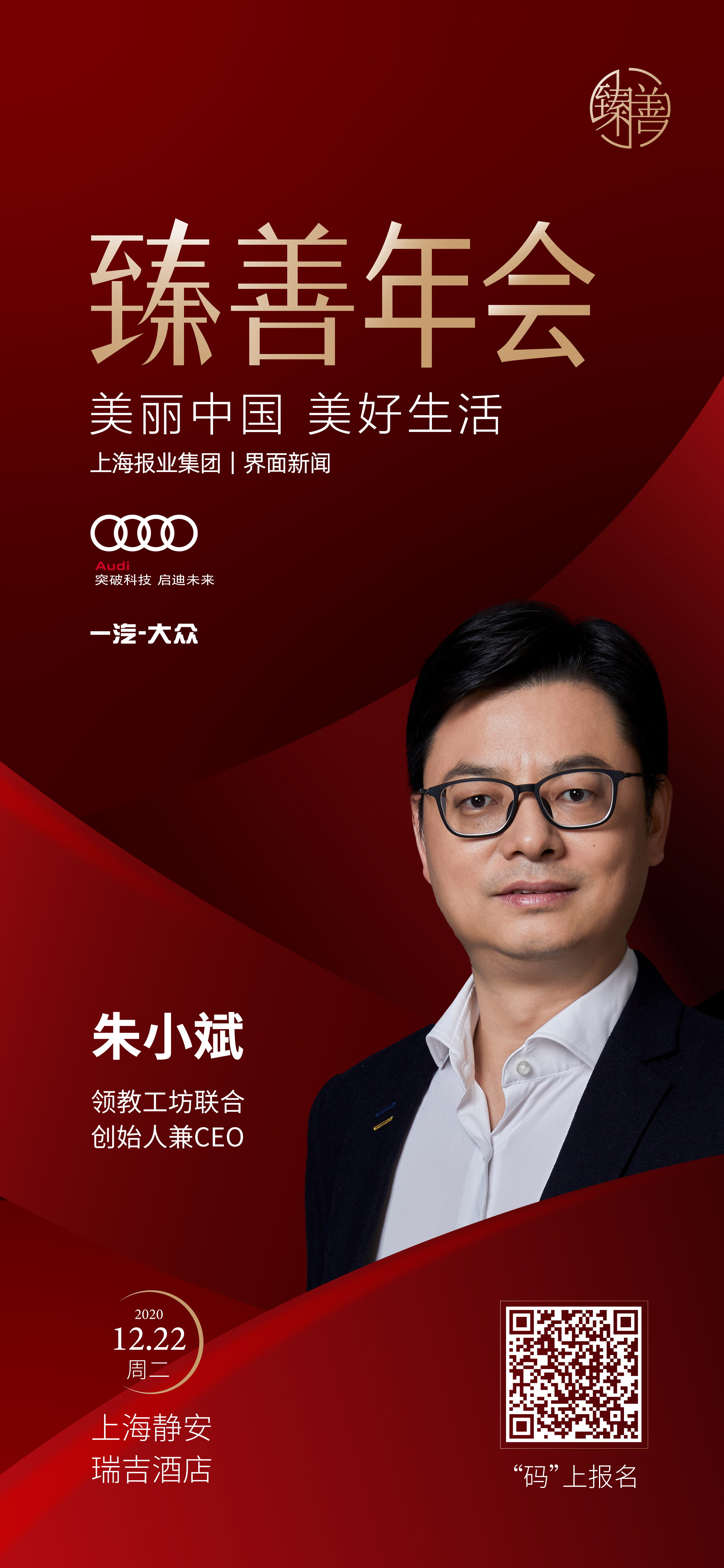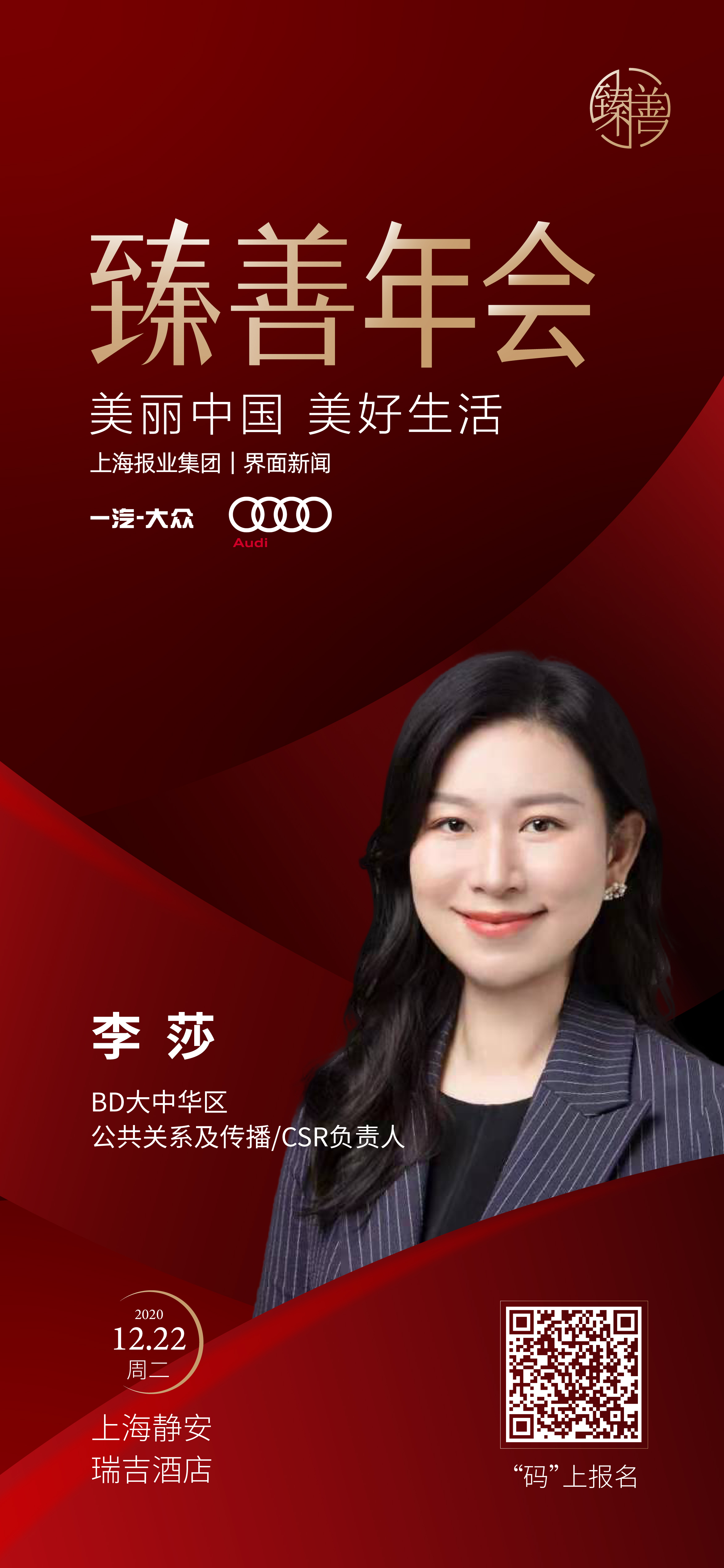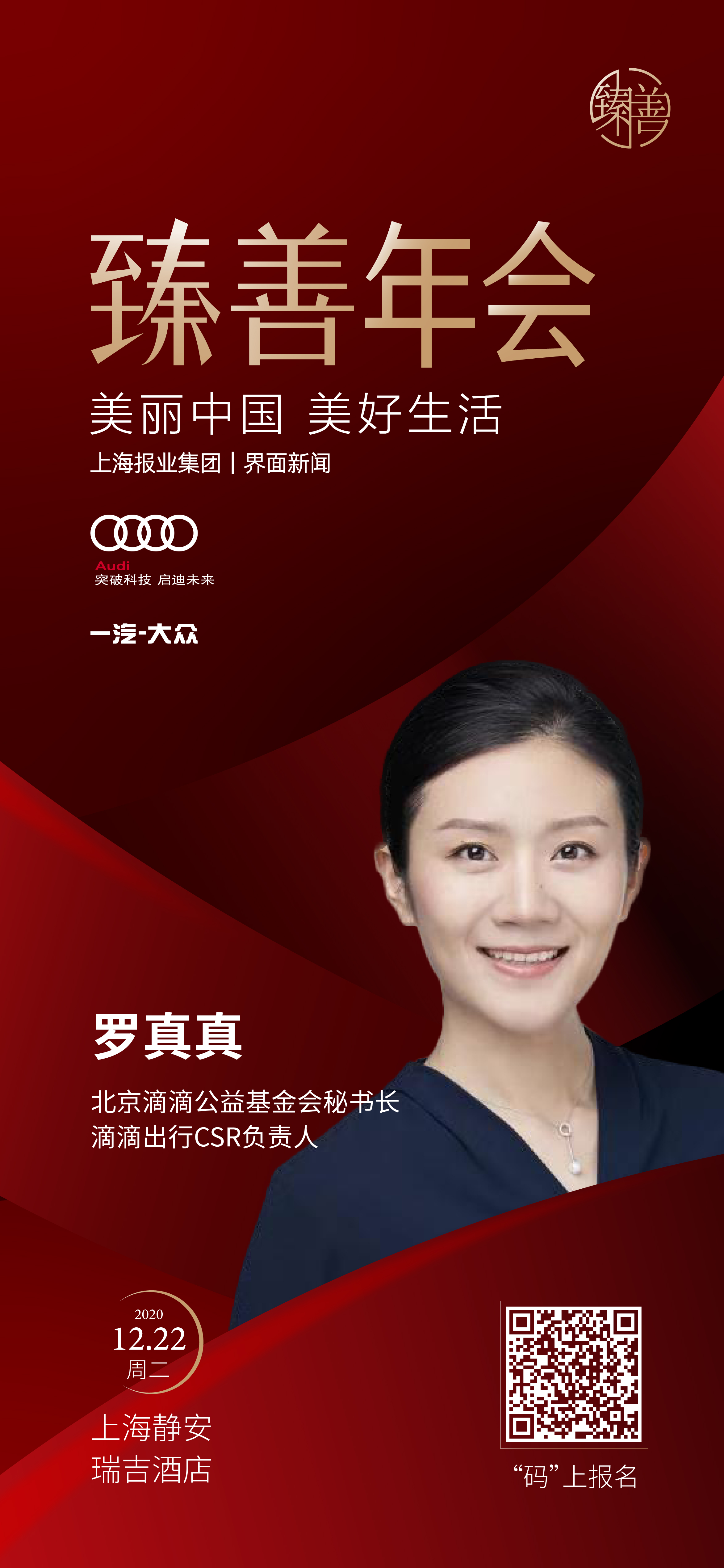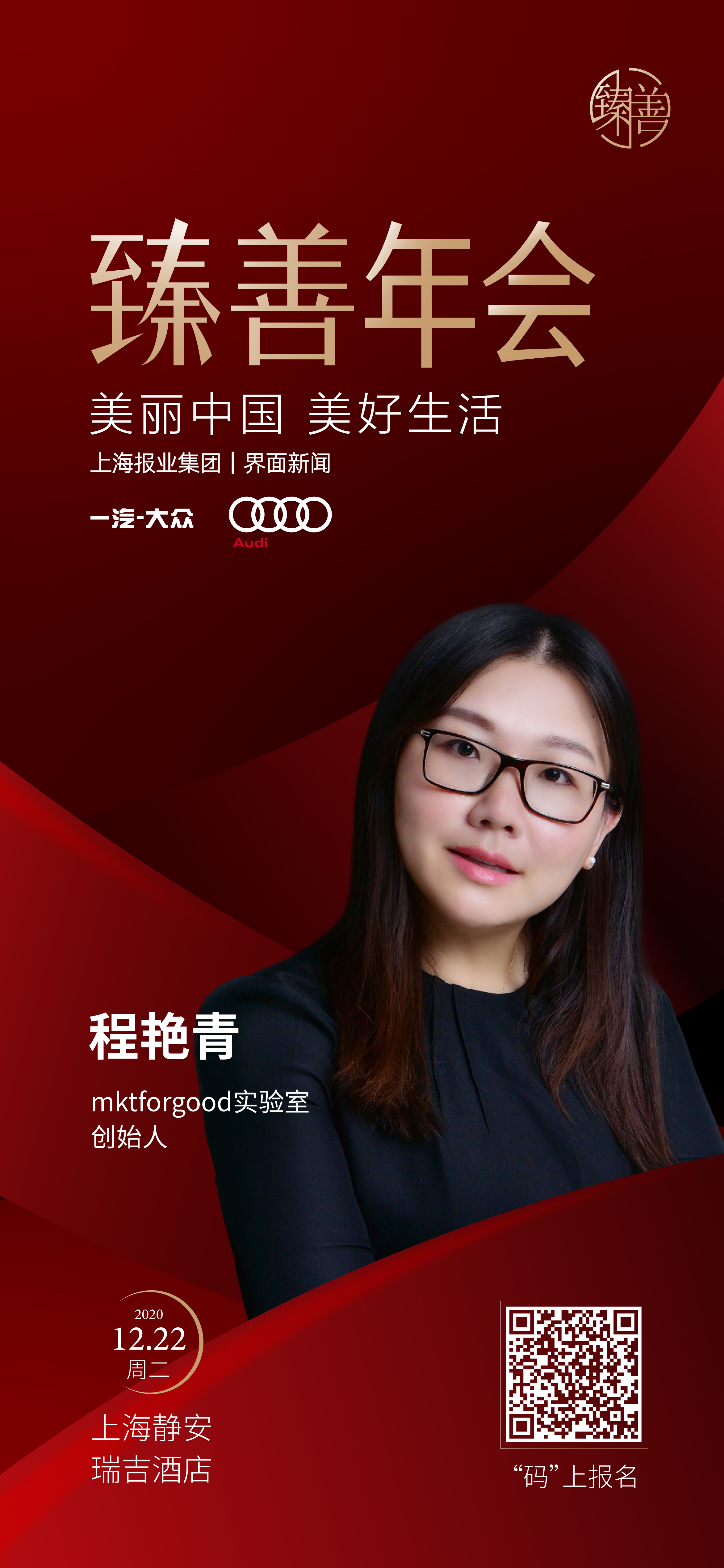 在全面小康的新起點,第五屆【界面臻善年會】將于2020年12月22日在上海舉辦。論壇由上海報業(yè)集團(tuán) | 界面新聞主辦、復(fù)旦大學(xué)管理學(xué)院作為獨家學(xué)術(shù)支持,作為“現(xiàn)代尊貴”理念的先行者——豪華汽車品牌一汽-大眾奧迪則作為論壇首席合作伙伴,并于年會當(dāng)天亮相現(xiàn)場,全方位展現(xiàn)奧迪品牌的魅力。在論壇的圓桌對話環(huán)節(jié),我們邀請到了MKTforgood實驗室創(chuàng)始人程艷青女士主持,斯道拉恩索集團(tuán)?級副總裁、中國區(qū)總裁宇德鈞先生、領(lǐng)教工坊聯(lián)合創(chuàng)始人兼CEO朱小斌先生、北京滴滴公益基金會秘書長、滴滴出行CSR負(fù)責(zé)人羅真真女士、BD大中華區(qū)公共關(guān)系及傳播總監(jiān)、CSR負(fù)責(zé)人李莎女士確認(rèn)出席圓桌。