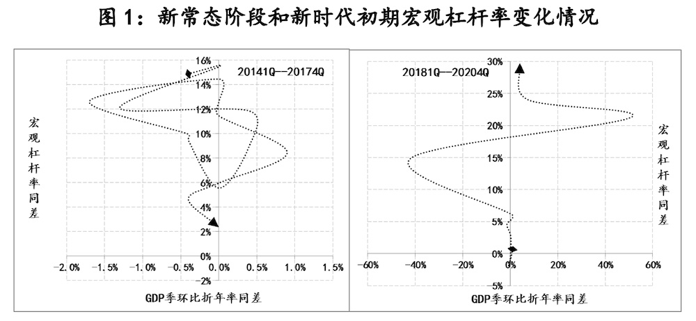 之前宏調(diào)已有“穩(wěn)杠桿”和“去杠桿”經(jīng)驗(yàn),為2021年穩(wěn)杠桿的宏調(diào)提供了重要借鑒。例如,伴隨2014年經(jīng)濟(jì)發(fā)展進(jìn)入新常態(tài),經(jīng)濟(jì)增長(zhǎng)由高速向中高速轉(zhuǎn)變,宏觀調(diào)控進(jìn)一步向經(jīng)濟(jì)結(jié)構(gòu)性調(diào)整和發(fā)展方式轉(zhuǎn)變側(cè)重,雖然當(dāng)時(shí)尚未對(duì)杠桿率有明確宏調(diào)指引,但已明確“化解以高杠桿和泡沫化為主要特征的各類風(fēng)險(xiǎn)將持續(xù)一段時(shí)間”,因此該階段的宏調(diào)重點(diǎn)之一就是“去杠桿”。就實(shí)際情況而言,該階段去杠桿更多體現(xiàn)為抑制宏觀杠桿率上升速度,即宏觀杠桿率同差下降但繼續(xù)保持正值,由期初15%以上的水平降至2%左右(宏觀杠桿率同差 = 當(dāng)期宏觀杠桿率 - 上年同期宏觀杠桿率)。