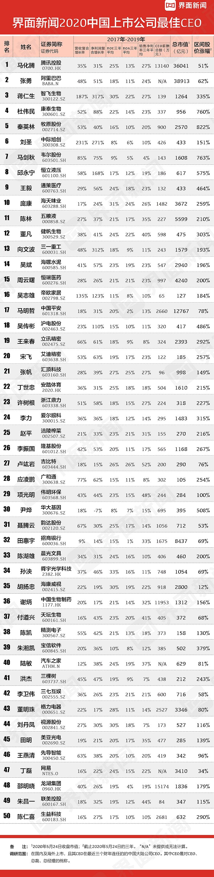 界面新聞2020界面新聞上市公司最佳CEO名單如下,今年的超級(jí)CEO榜單將全新升級(jí),敬請(qǐng)期待。