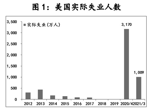 然而針對疫情沖擊,美國實施的“財政紓困為主、貨幣寬松為輔”的政策組合,可能帶來美國菲利普斯曲線重返陡峭化,按照美聯(lián)儲在上周議息會議中公布的經(jīng)濟預(yù)測結(jié)果來看,雖然曲線的陡峭化速度較慢,但陡峭化趨勢得到了延續(xù),但就此而言,只要不傷及經(jīng)濟復(fù)蘇勢頭(圖1顯示本次美國就業(yè)市場修復(fù)速度是歷史最快水平,一年間實際失業(yè)人群減少了2160萬),美債收益率的上行就不會給美聯(lián)儲保持寬松形成約束。