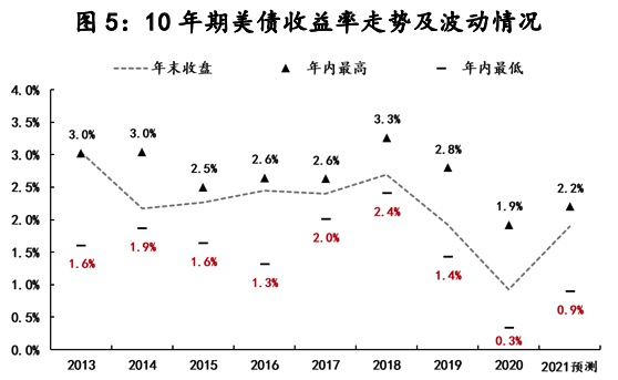 鑒于上述事關(guān)美聯(lián)儲的三個變化,我們將10年期美債收益率年內(nèi)高點由2%上調(diào)至2.2%。