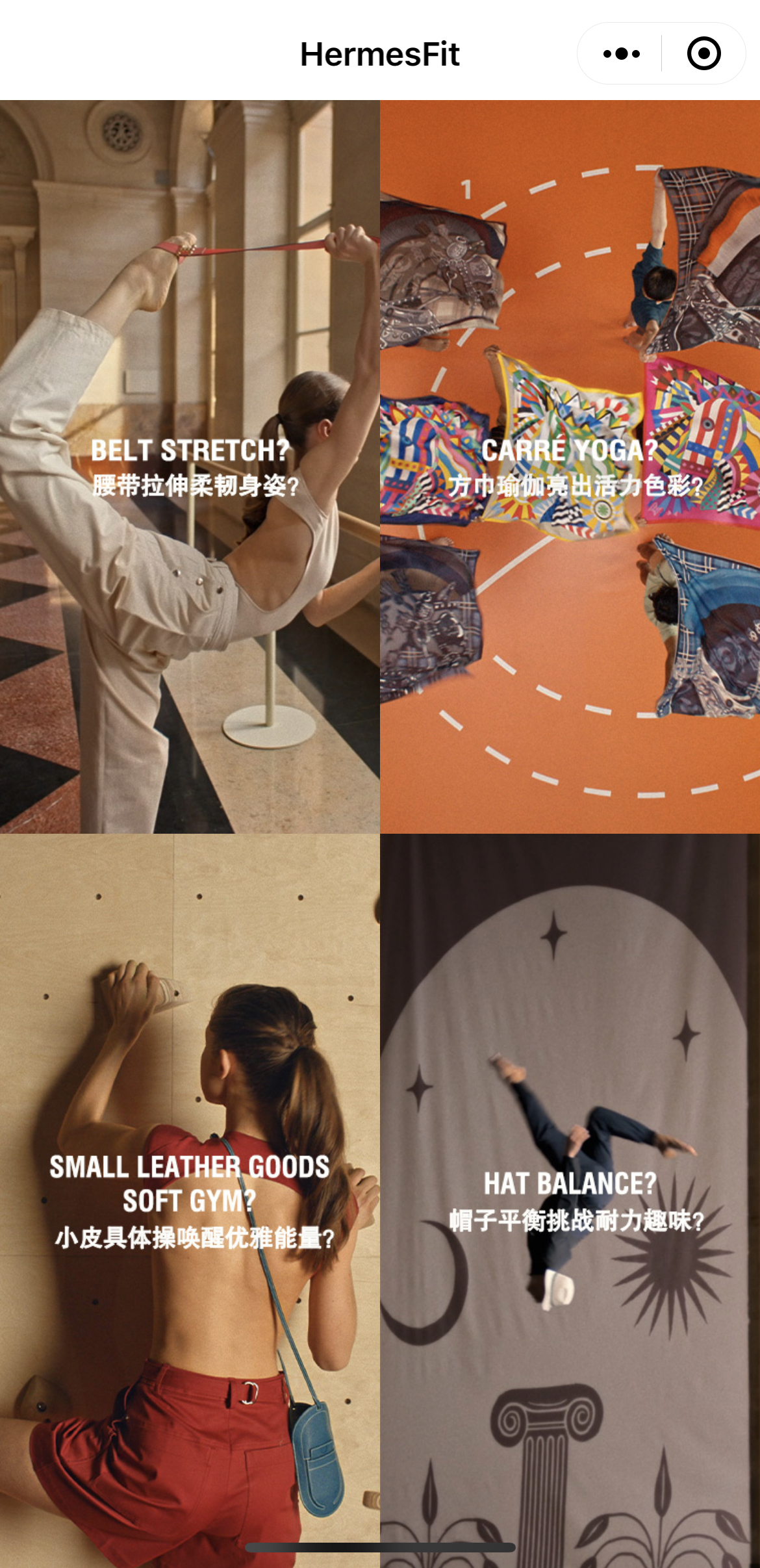 五一假期剛結(jié)束,愛馬仕(Hermes)就在微信小程序上投放了一個與健身有關(guān)的新廣告,名為“愛馬仕健身”(#HermesFit)。