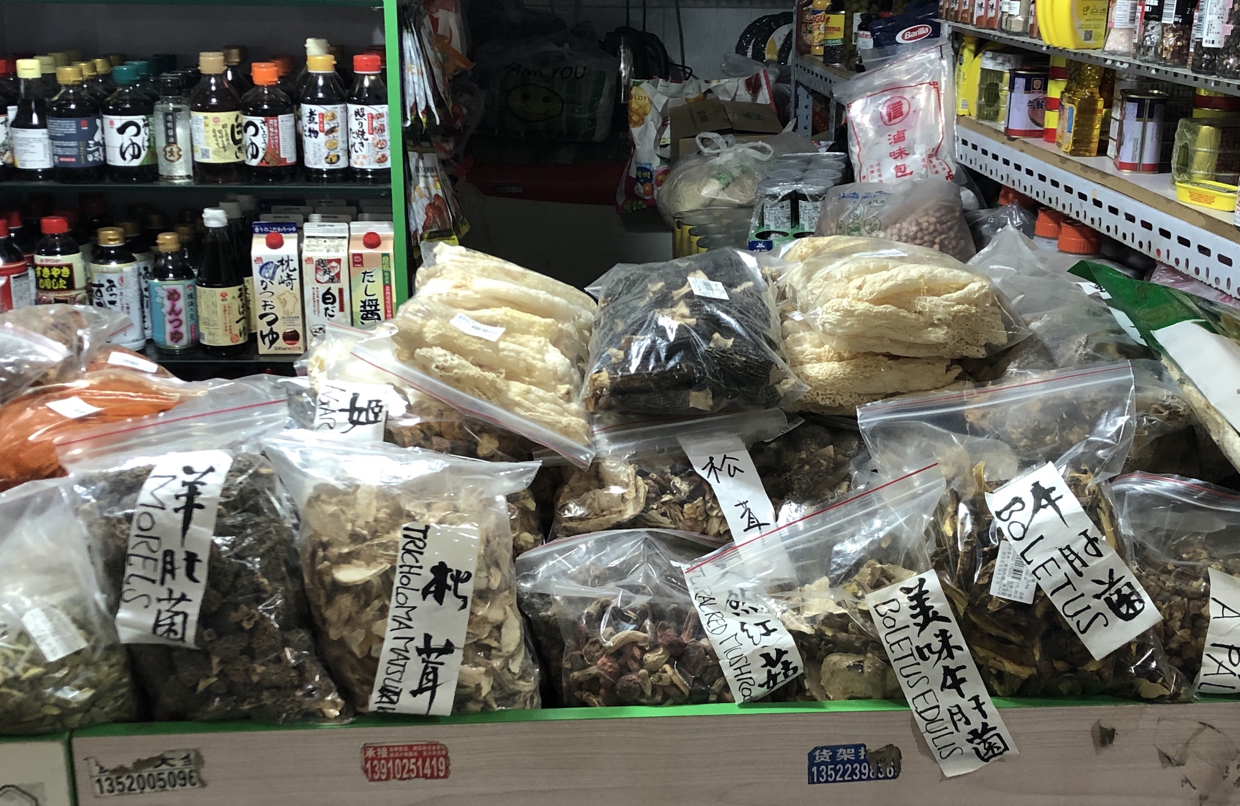 三源里菜市場攤位上藝術(shù)家的書法標簽 (圖片拍攝:馬越)