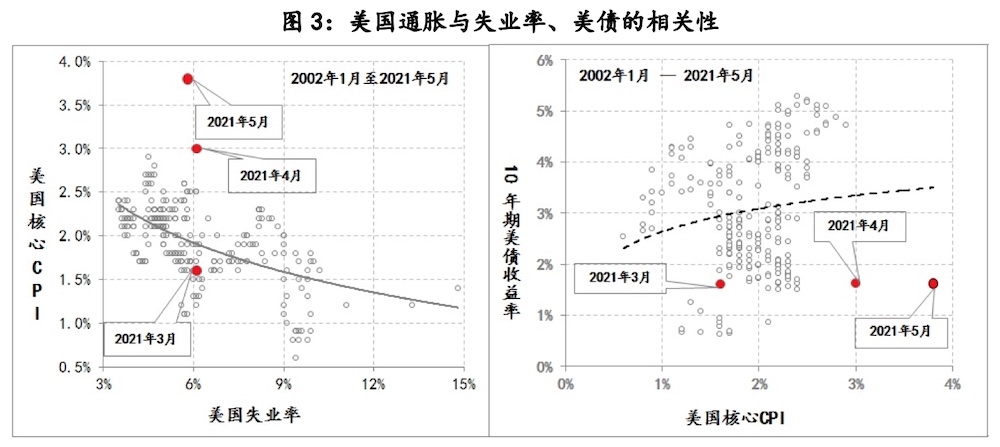 但在二季度美債收益率的調(diào)整同時,美國通脹水平卻在持續(xù)快速上升,尤其是剔除能源和食品后核心CPI漲幅連創(chuàng)本世紀(jì)的新高,目前已升至3.8%。按照核心CPI與美債收益率的經(jīng)驗規(guī)律,很顯然美債收益率明顯偏低,大幅低于趨勢水平。
