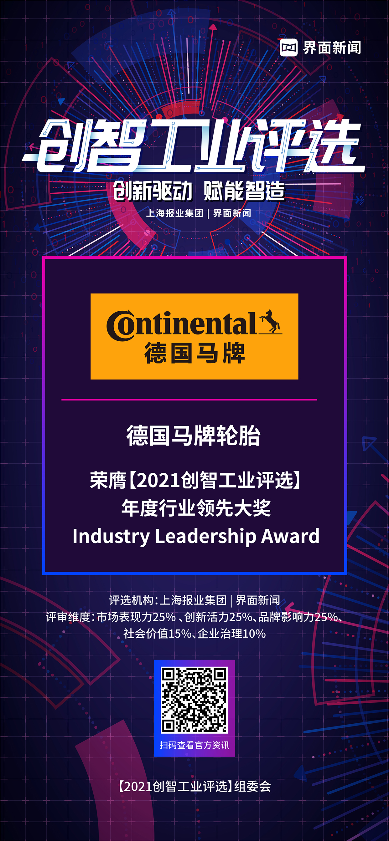 9月16日,上海報業(yè)集團|界面新聞在上海虹橋康得思酒店舉辦了2021【創(chuàng)智工業(yè)評選】頒獎典禮。國內(nèi)政商學(xué)界領(lǐng)袖與制造業(yè)專家強大陣容集結(jié),聚焦數(shù)字化時代的產(chǎn)業(yè)升級與變化,共同探討“碳中和”時代工業(yè)企業(yè)轉(zhuǎn)型的機遇與挑戰(zhàn)。德國馬牌輪胎以創(chuàng)新、安全和可持續(xù)的理念和優(yōu)質(zhì)的產(chǎn)品服務(wù),榮膺年度行業(yè)領(lǐng)先大獎。