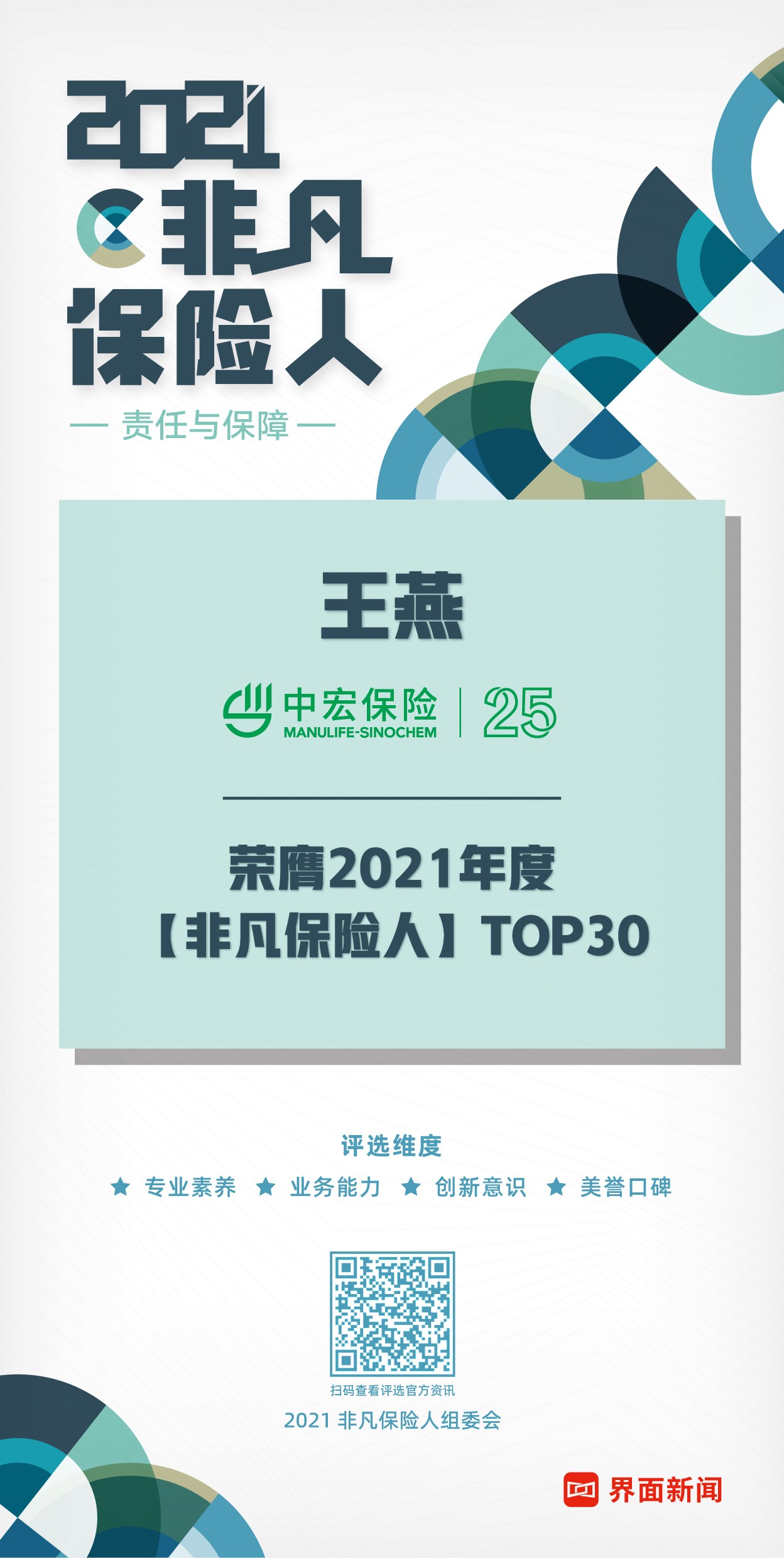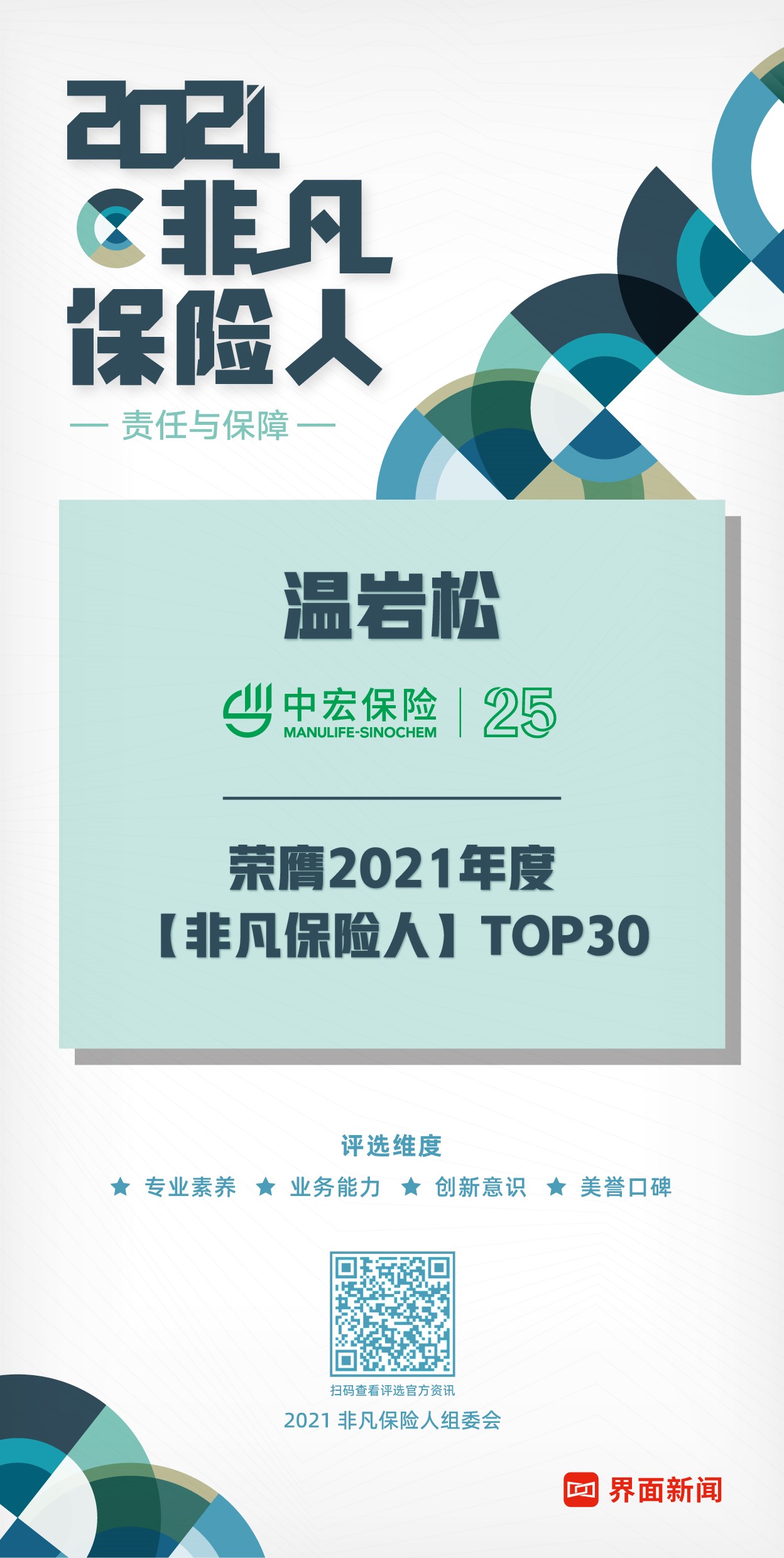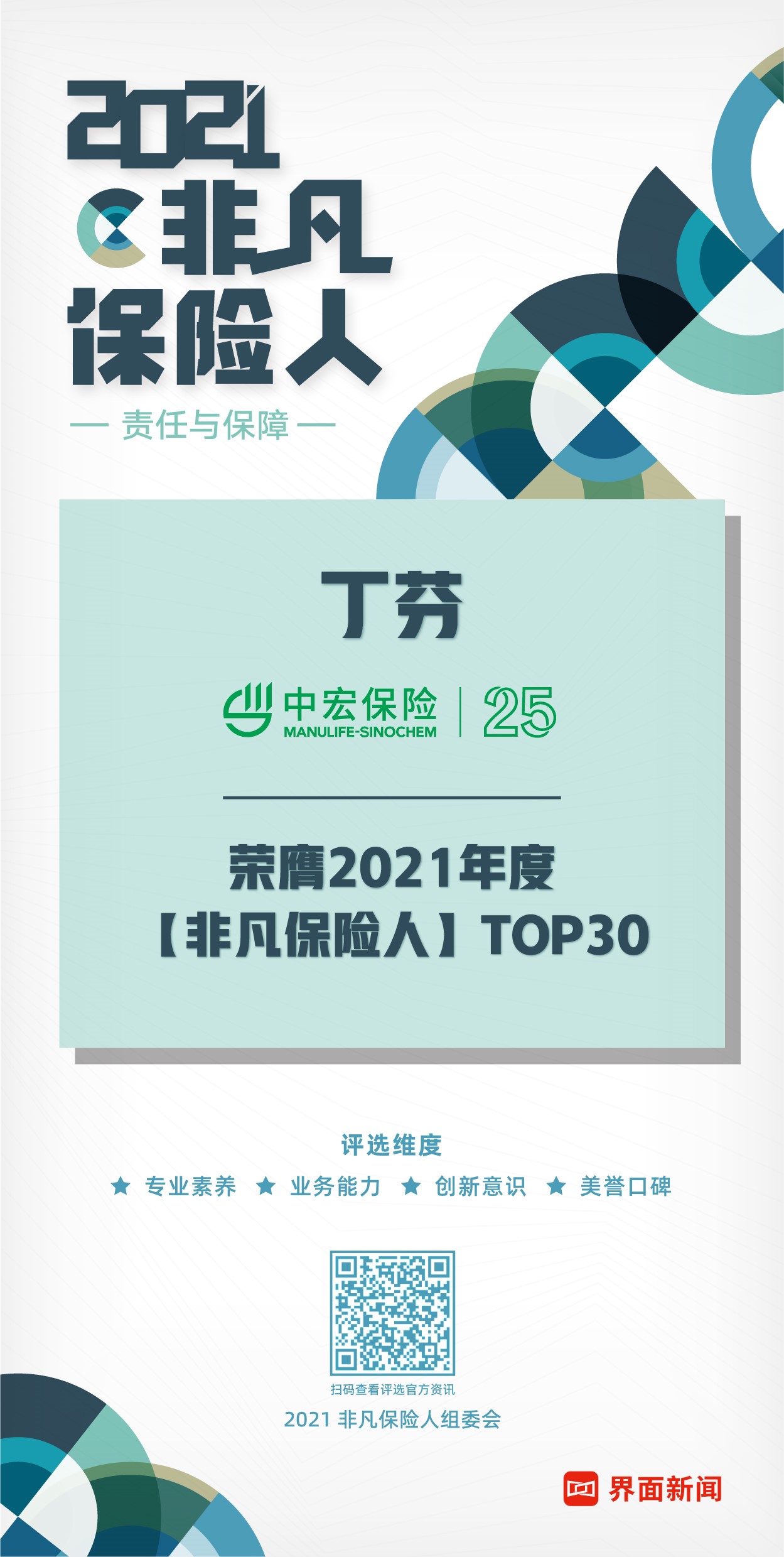 12月15日,上海報(bào)業(yè)集團(tuán)l界面新聞在上海前灘香格里拉酒店舉辦了2021年度【非凡保險(xiǎn)人】TOP30頒獎(jiǎng)典禮。本次評(píng)選將在綜合考量輿情指標(biāo)、數(shù)據(jù)指標(biāo)、模式創(chuàng)新、美譽(yù)口碑等維度的基礎(chǔ)上,通過榜單形式,旨在鼓勵(lì)、嘉獎(jiǎng)始終保持高度誠信服務(wù)意識(shí)和社會(huì)責(zé)任意識(shí)的保險(xiǎn)行業(yè)人。