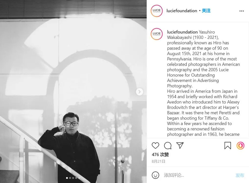 2021年8月20日,日裔美國攝影師 Yasuhiro Wakabayashi 去世,享年90歲。Yasuhiro Wakabayashi也被稱為 Hiro。