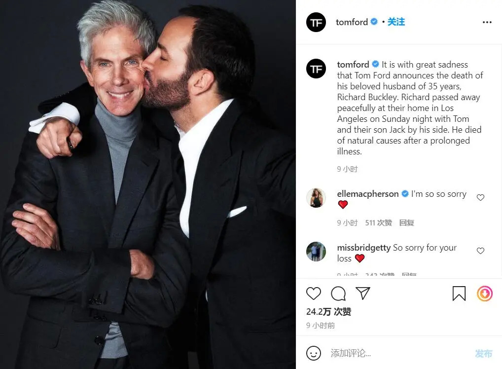 (詳見《華麗志》:Tom Ford 35年的伴侶、美國資深時尚記者 Richard Buckley 去世,享年72歲)