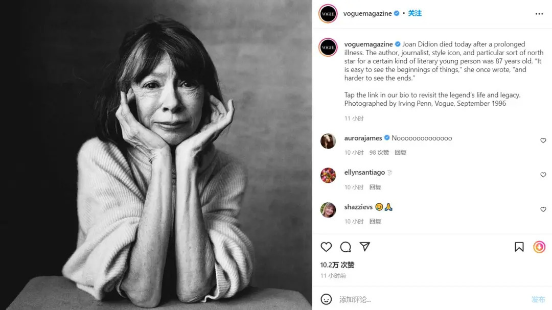 (詳見《華麗志》:兩位曾為《VOGUE》工作的杰出女性去世:前主編 Grace Mirabella 和女作家 Joan Didion)