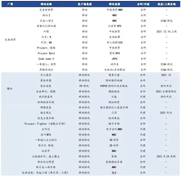 上市公司中,老牌大廠三七互娛和完美世界也有多款同類型游戲于2022年亮相。