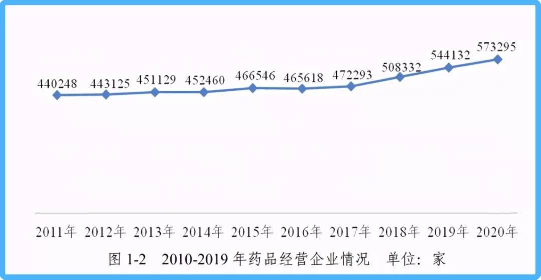 根據(jù)國家藥品監(jiān)督管理局綜合和規(guī)劃財(cái)務(wù)司及國家藥品監(jiān)督管理局信息中心發(fā)布的《藥品監(jiān)督管理統(tǒng)計(jì)年度報(bào)告(2020年)》,截至2020年底,全國共有《藥品經(jīng)營許可證》持證企業(yè)57.33萬家。其中,零售藥店24.10萬家,占經(jīng)營企業(yè)數(shù)量的42.03%,零售連鎖企業(yè)和門店數(shù)量31.92萬家,占比55.68%。根據(jù)相關(guān)政策法規(guī),允許在線售藥的也即零售連鎖藥店,單體零售藥店不允許在線售藥。