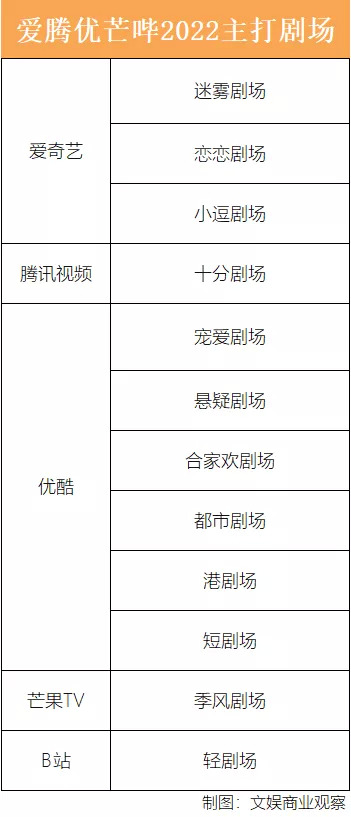 優(yōu)酷的劇場(chǎng)分類是視頻網(wǎng)站中最豐富的,其中寵愛(ài)劇場(chǎng)、懸疑劇場(chǎng)、港劇場(chǎng)為其去年主打的三張牌,而今年優(yōu)酷會(huì)在此基礎(chǔ)上向短劇場(chǎng)傾斜,但將面對(duì)騰訊視頻、B站以及芒果TV的三面夾擊。