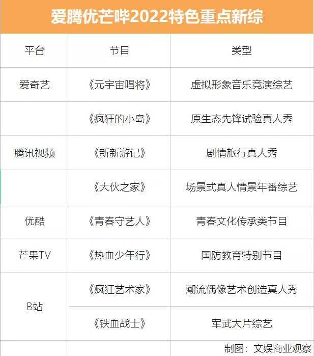 偶像選秀節(jié)目的驟然停滯使視頻網(wǎng)站的頭部綜藝布局出現(xiàn)了極大空缺,這一背景下,各家想在2022年做出成績(jī)只有兩個(gè)選擇:強(qiáng)化長(zhǎng)板與開(kāi)疆拓土。