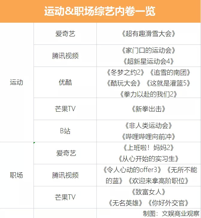 上述兩大類別外,視頻網(wǎng)站今年在運(yùn)動(dòng)、職場(chǎng)這兩大賽道也出現(xiàn)了扎堆現(xiàn)象。