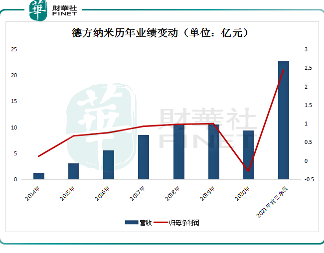 從業(yè)績表現(xiàn)來看,近幾年,德方納米業(yè)績起伏不定。2018年-2020年,該公司實現(xiàn)營業(yè)收入分別是10.54億元、10.54億元、9.42億元,歸母凈利潤分別是9811.62萬元、1億元、-2840.16萬元。