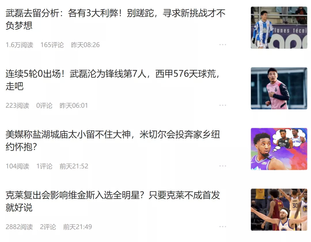 深度長(zhǎng)文很難支撐我們運(yùn)轉(zhuǎn),于是我們也只能根據(jù)市場(chǎng)環(huán)境進(jìn)行調(diào)整,以前主要是深度文章,現(xiàn)在也加入了一些短平快的足球資訊新聞內(nèi)容,比如當(dāng)日比賽的一些動(dòng)圖,或者類似微博的那種短消息,甚至還開始涉獵一些NBA的內(nèi)容,措辭也更加接地氣,標(biāo)題也開始“頭條范兒”。