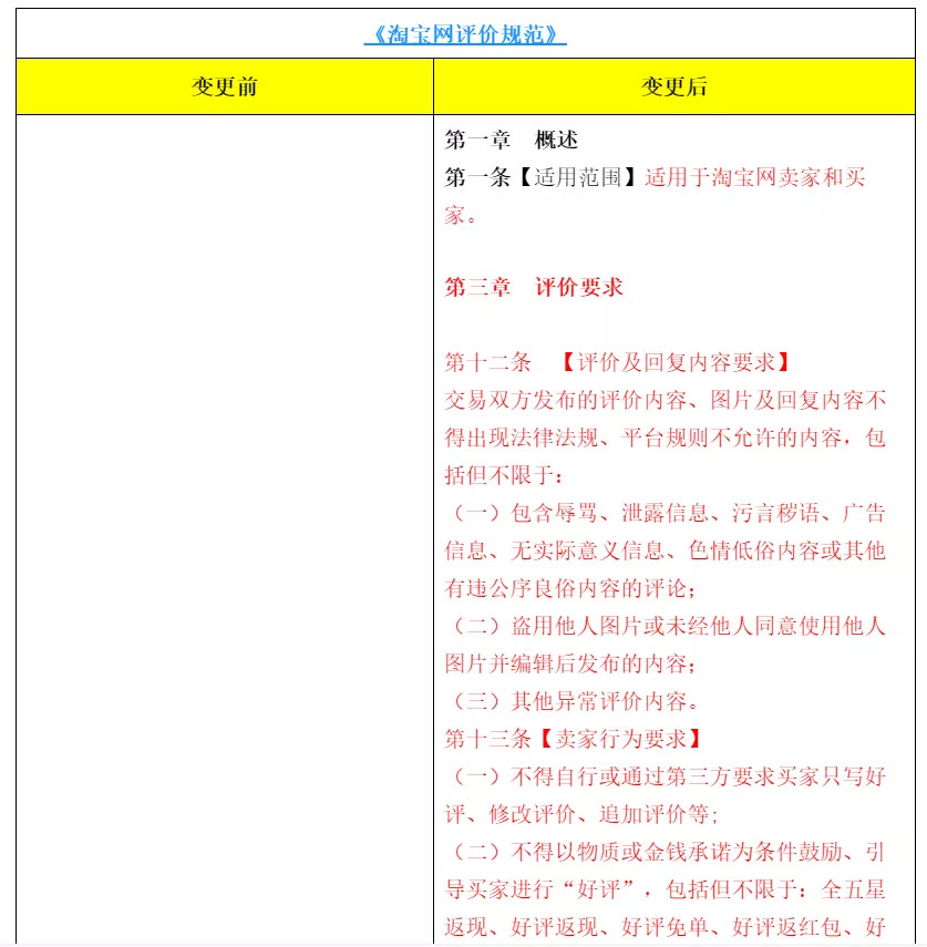 20天前,淘寶網(wǎng)也發(fā)布了《淘寶網(wǎng)評(píng)價(jià)規(guī)范》(下稱《規(guī)范》)規(guī)則變更公示通知,重點(diǎn)突出了禁止“好評(píng)返現(xiàn)”的內(nèi)容。