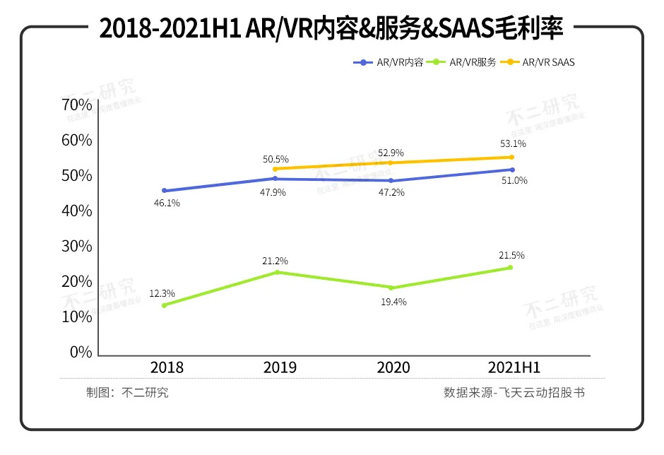 「不二研究」發(fā)現(xiàn),AR/VR服務的毛利率偏低,或由于流量獲取成本過高所致。