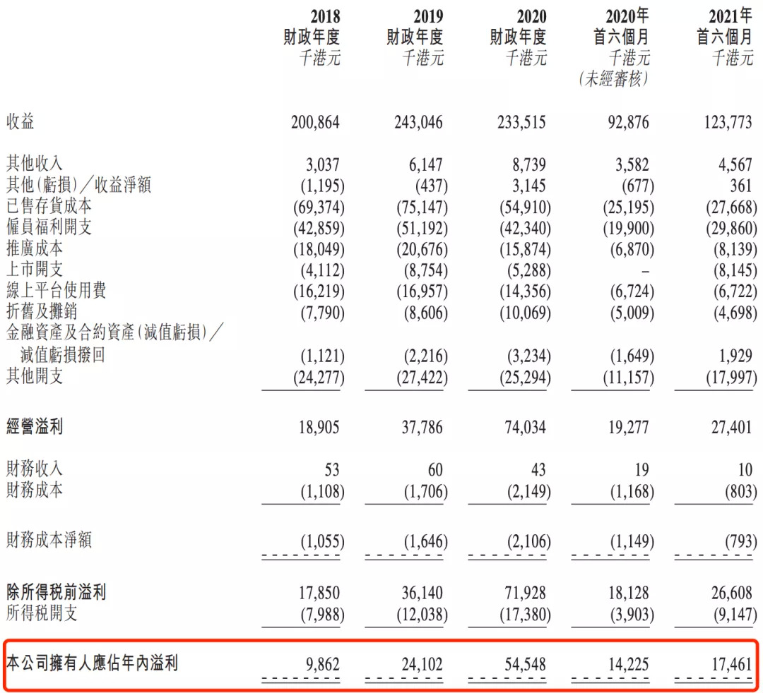 同時(shí),依靠后期低成本的IP授權(quán)業(yè)務(wù),德盈控股已經(jīng)實(shí)現(xiàn)連續(xù)盈利。2018-2020財(cái)年的凈利潤(rùn)分別為986.2萬、2410萬和5454.8萬港元。2021財(cái)年上半年的凈利潤(rùn)1746.1萬港元,較上年同期的1422.5萬港元增長(zhǎng)22.7%。
