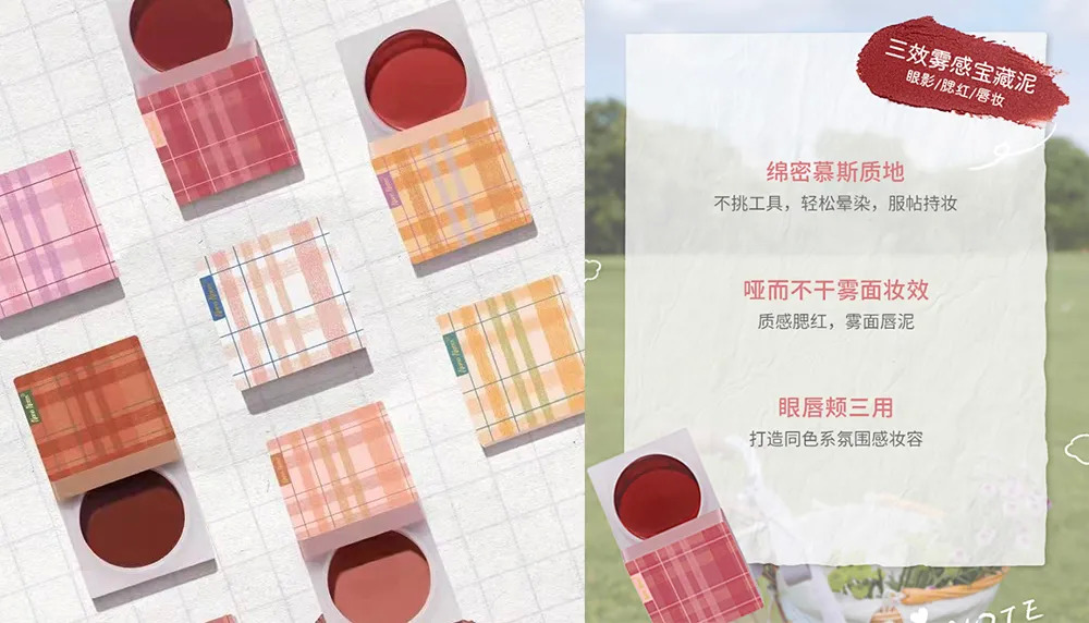 奈璣子聯(lián)合創(chuàng)始人樂(lè)園表示,這款三用唇頰泥在產(chǎn)品設(shè)計(jì)時(shí)最初考慮到的是,幫助化妝新手實(shí)現(xiàn)面部的協(xié)調(diào)配色。她表示,眼/頰/唇的同色系搭配,可以打造時(shí)下很流行的氛圍感妝容,而對(duì)于很多不擅長(zhǎng)色彩類產(chǎn)品(眼影、腮紅、唇膏等)搭配的消費(fèi)者來(lái)說(shuō),同色系搭配也是最不容易出錯(cuò)的。