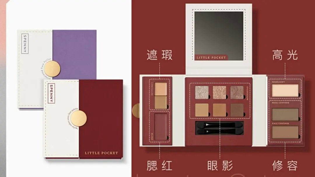 部分品牌也會(huì)通過(guò)特別的包裝形式將“各司其職”的品類組合于一盤。比如,詩(shī)佩妮小口袋旅行綜合盤和彩棠點(diǎn)彩琉紋眼頰盤。