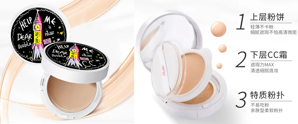 同時(shí),在底妝界也有類似的單品拼配產(chǎn)品,比如國(guó)產(chǎn)彩妝品牌populart波兒推出的氣墊cc霜,采用了上層粉餅下層cc霜的設(shè)計(jì),將兩個(gè)單品合二為一。