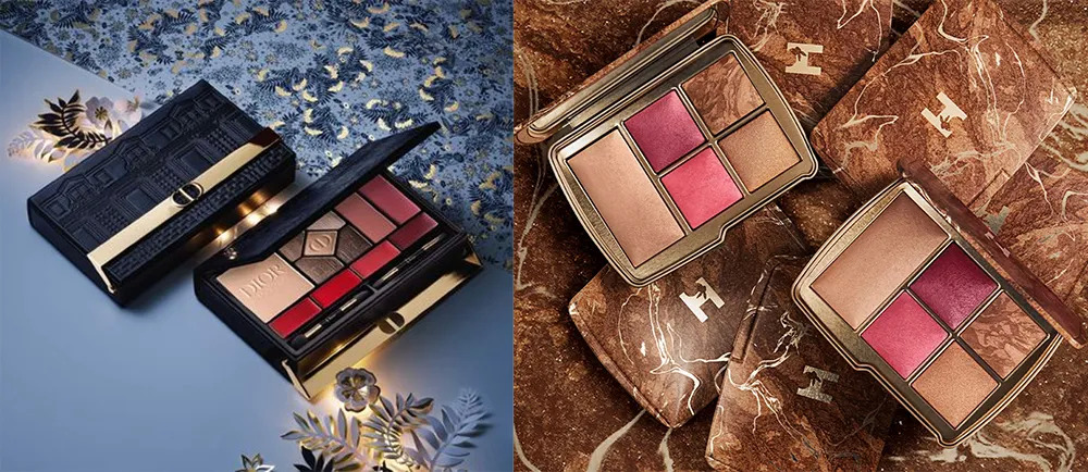 這類“祖?zhèn)鳌本C合盤對(duì)于普通消費(fèi)者來(lái)說(shuō),體積大、顏色相對(duì)更跳脫,并不適合日常攜帶和使用。有些國(guó)際大牌對(duì)綜合盤的設(shè)計(jì)會(huì)更加小巧一些,如迪奧2021年的圣誕限定面部彩妝綜合盤,包含眼影、粉餅、高光、口紅四種品類,并配備小號(hào)的雙頭唇刷、雙頭眼影刷和腮紅刷。hourglass2021年的圣誕限定彩妝盤則以常規(guī)的腮紅+高光+修容組合作為搭配。