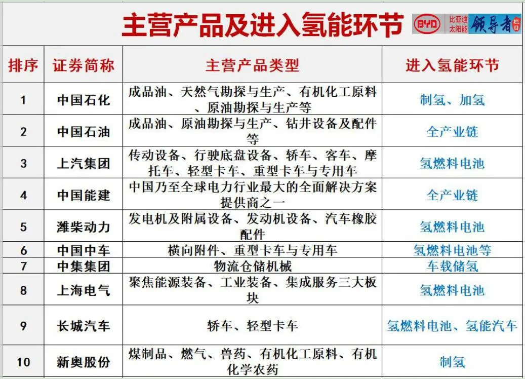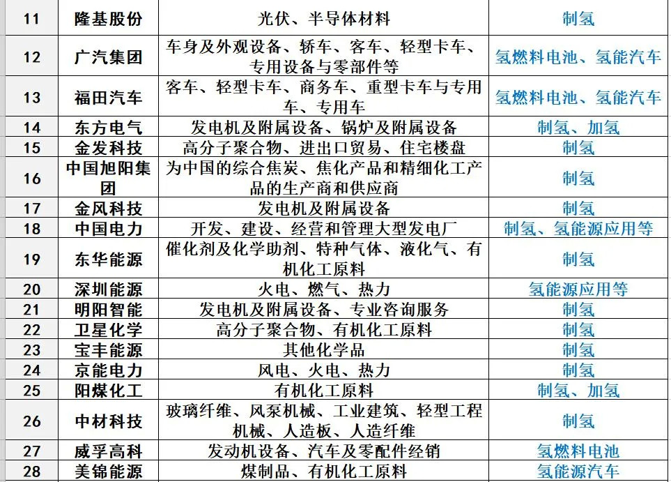 我們梳理發(fā)現(xiàn),如下表,103家氫能核心玩家中既有中國(guó)石化、中國(guó)石油、中國(guó)中車(chē)、中國(guó)能建、陽(yáng)煤集團(tuán)等傳統(tǒng)能源巨擘,還有上汽集團(tuán)、廣汽集團(tuán)、長(zhǎng)城汽車(chē)等車(chē)企巨頭,當(dāng)然也不乏隆基股份、協(xié)鑫集團(tuán)、陽(yáng)光電源、明陽(yáng)智能等新能源龍頭企業(yè),來(lái)自不同行業(yè)的企業(yè)可謂五花八門(mén)。