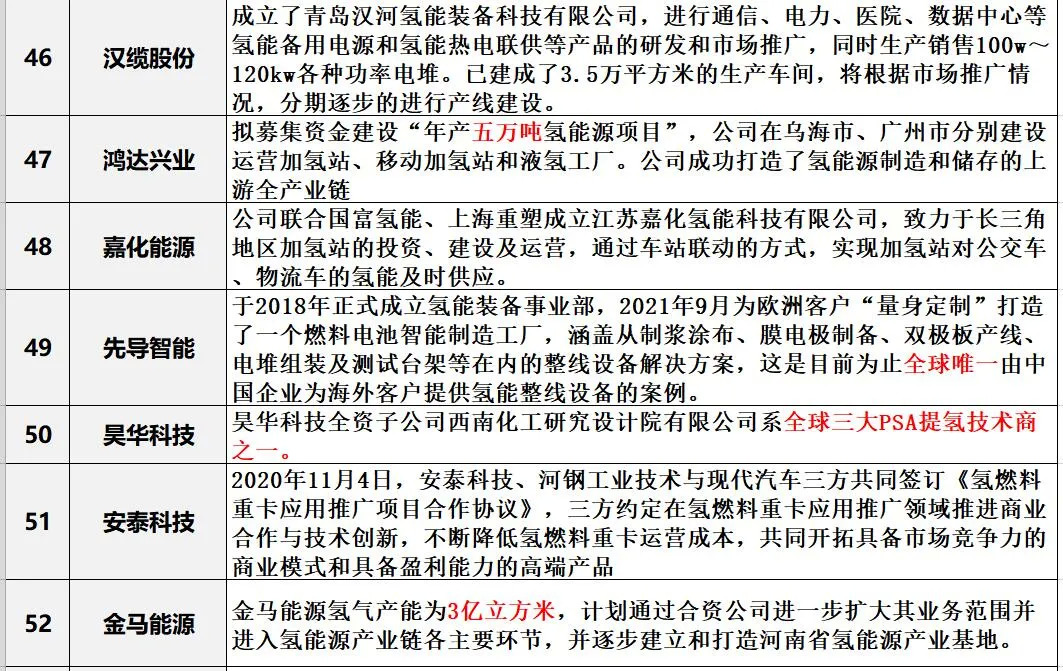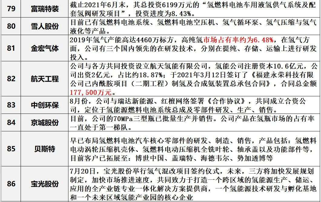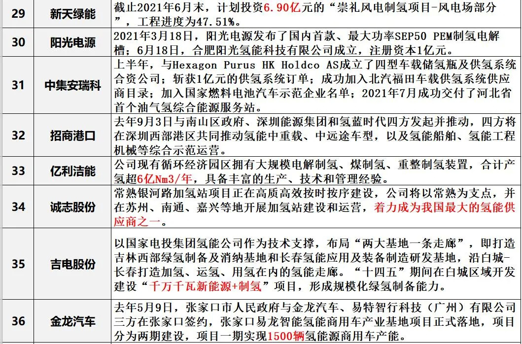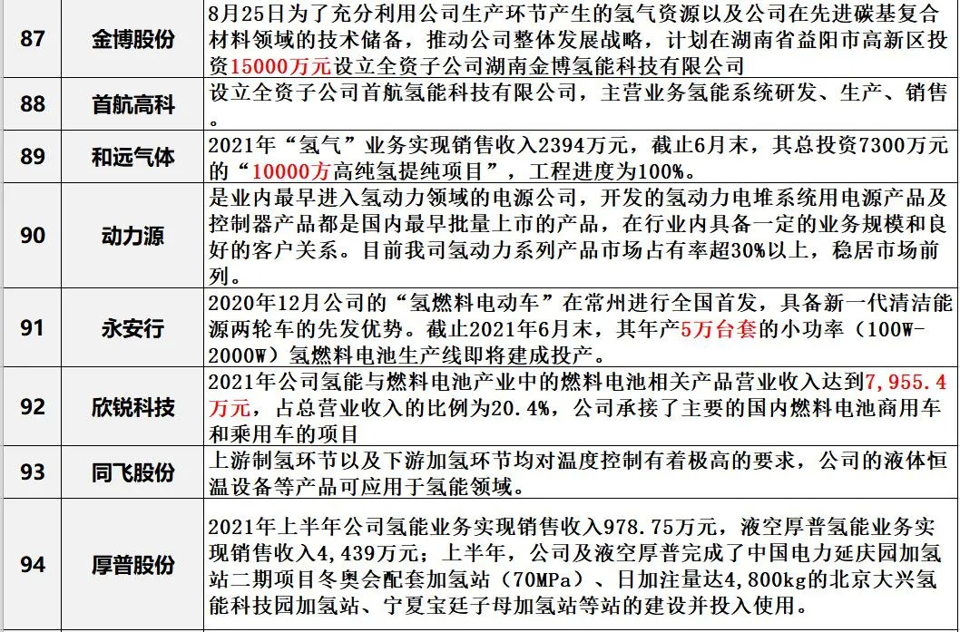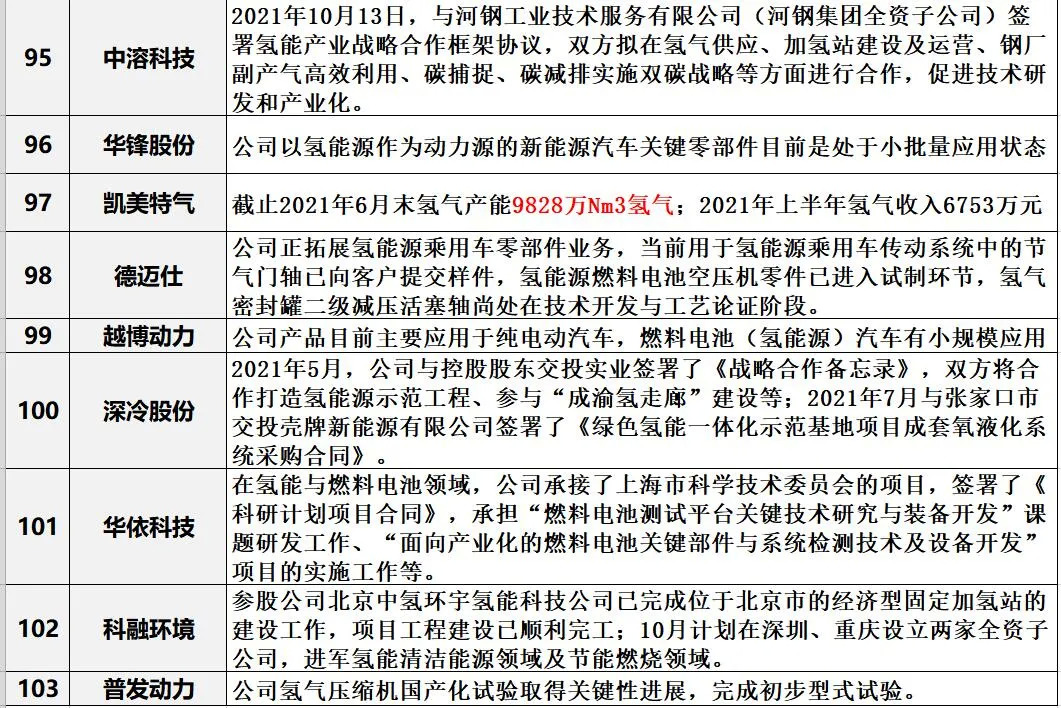 三.103家企業(yè)氫能規(guī)劃與布局:都有具體氫能項(xiàng)目/計(jì)劃在推進(jìn)、落實(shí),,涵蓋制氫、儲(chǔ)氫、運(yùn)氫、氫燃料電池、氫能源汽車(chē)等氫能全產(chǎn)業(yè)鏈。