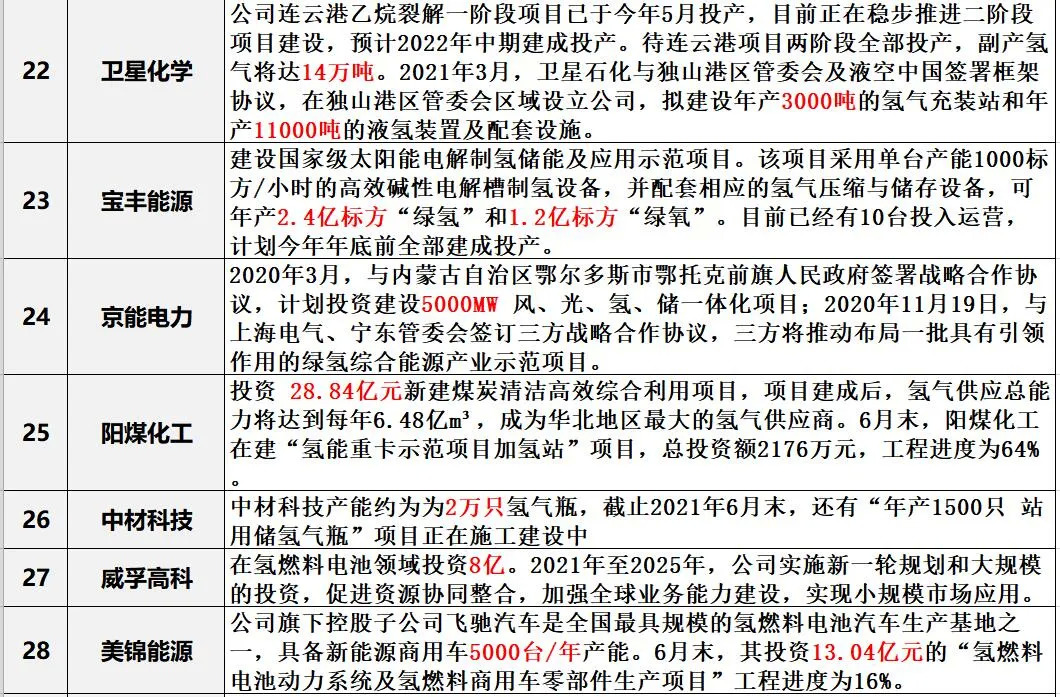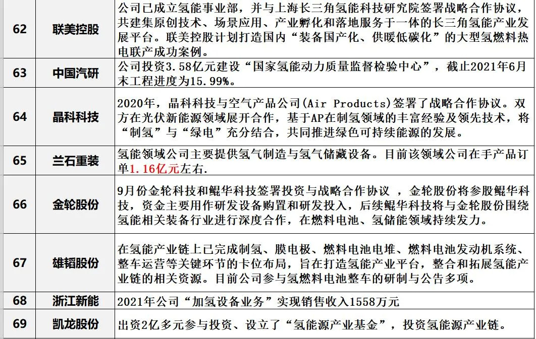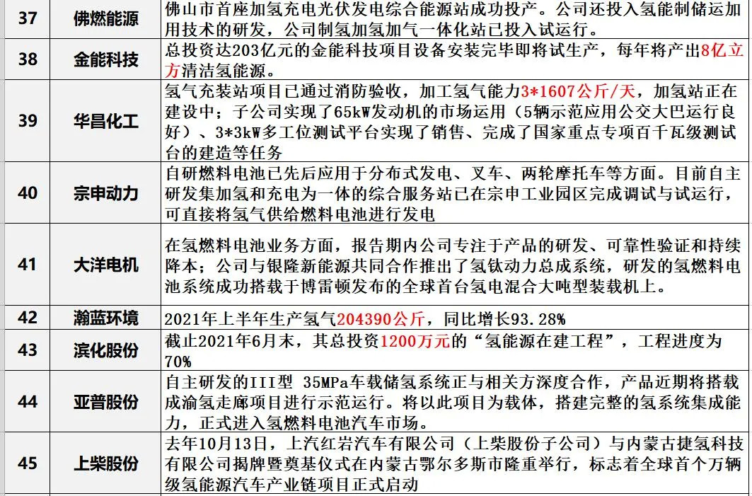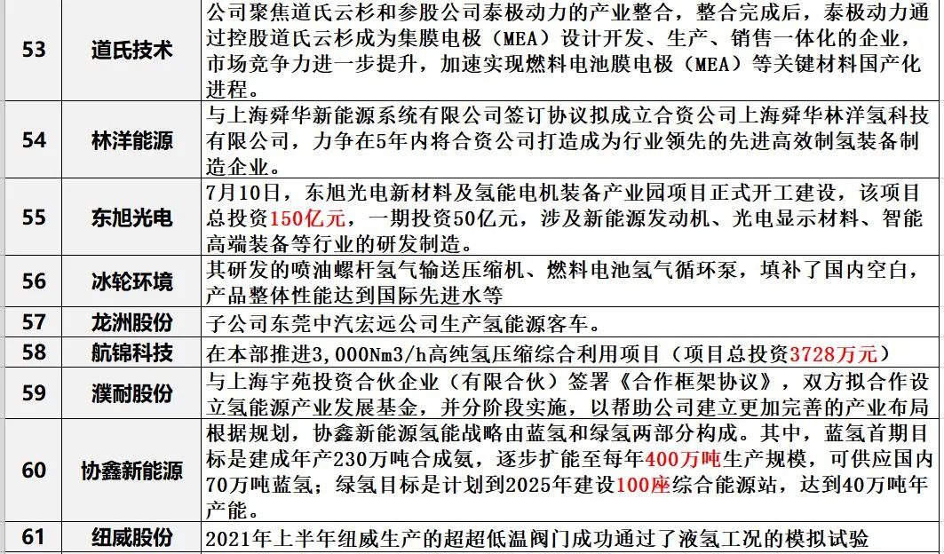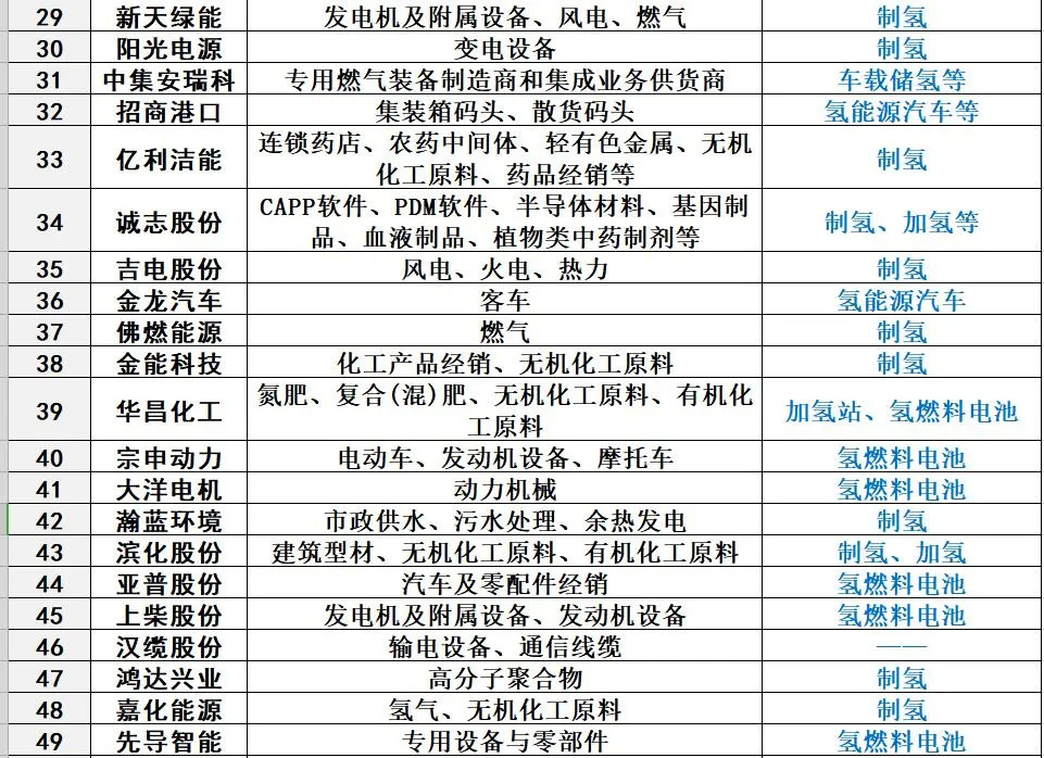 三.103家企業(yè)氫能規(guī)劃與布局:都有具體氫能項(xiàng)目/計(jì)劃在推進(jìn)、落實(shí),,涵蓋制氫、儲(chǔ)氫、運(yùn)氫、氫燃料電池、氫能源汽車(chē)等氫能全產(chǎn)業(yè)鏈。