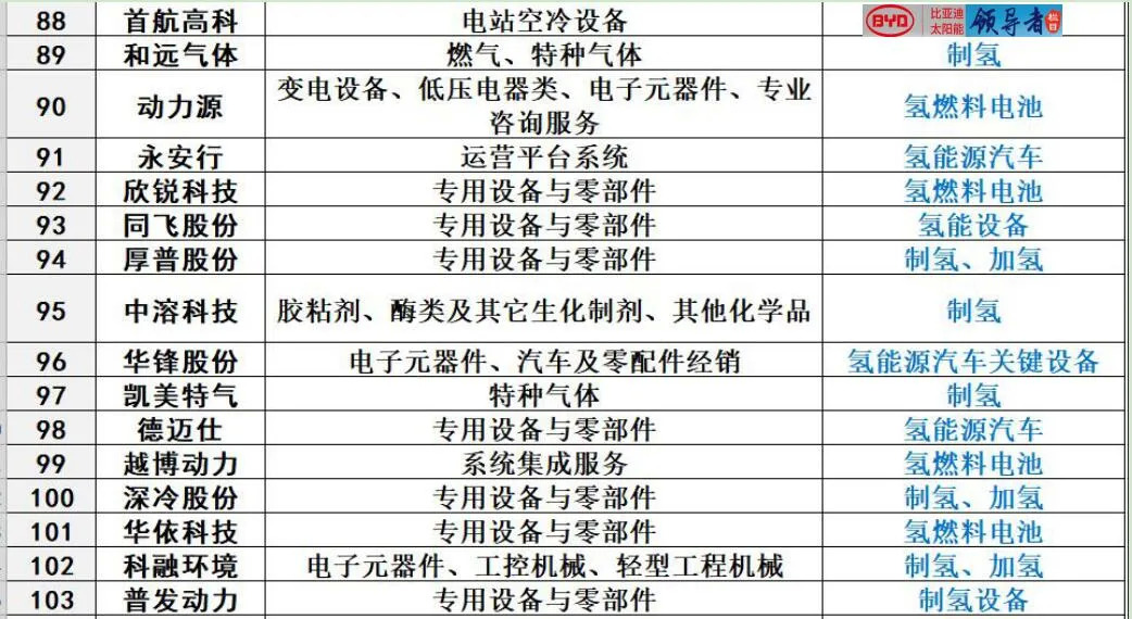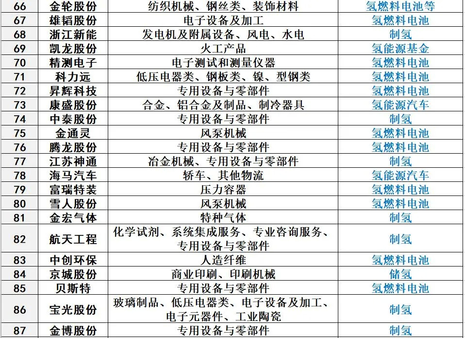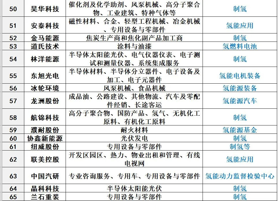 一.103家企業(yè)主業(yè)及涉足氫能環(huán)節(jié)