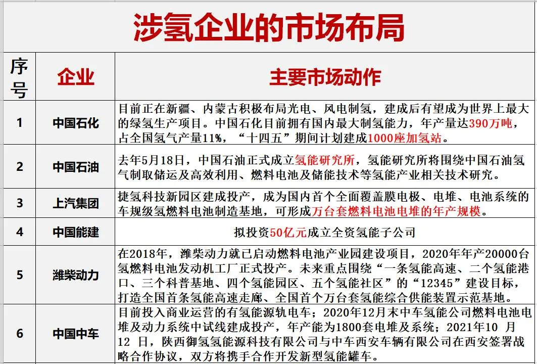 比如中國(guó)石化目前擁有國(guó)內(nèi)最大制氫能力,年產(chǎn)量達(dá)390萬(wàn)噸,占全國(guó)氫氣產(chǎn)量11%,“十四五”期間其計(jì)劃建成1000座加氫站。