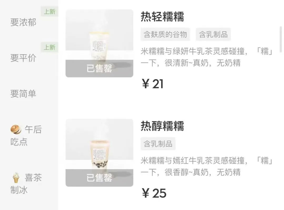 名字叫輕糯糯和醇糯糯,推出小料“米糯糯”,米香明顯、吸管友好,樓下的門店經(jīng)常售罄。