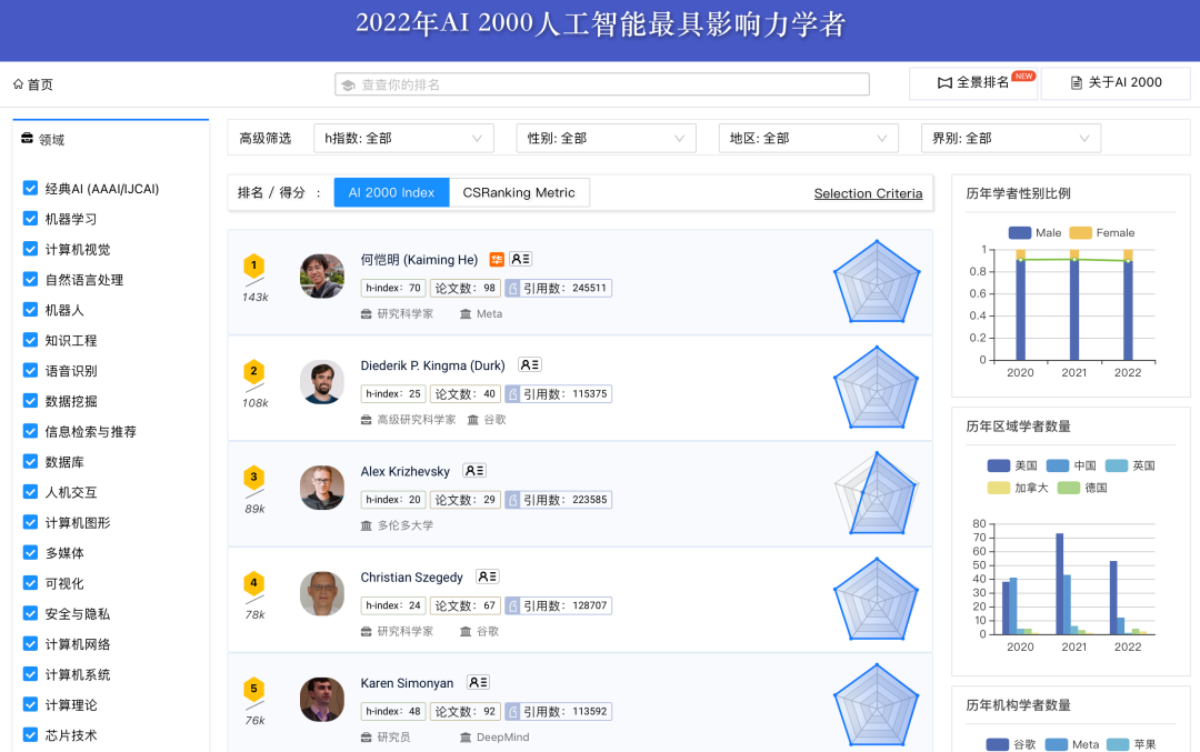 智東西1月25日消息,今日,2022年人工智能全球最具影響力學者榜單——AI 2000重磅發(fā)布!