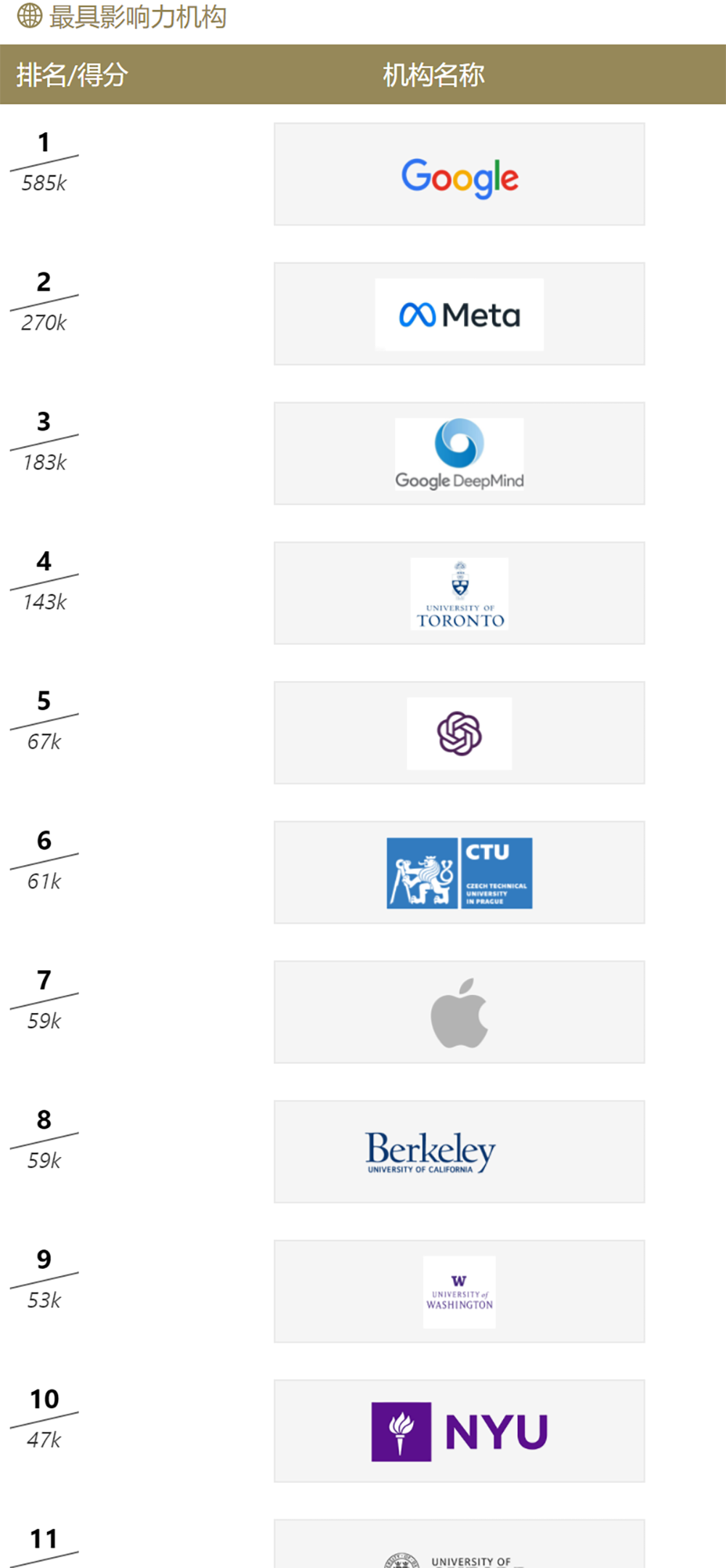 04.機構分布:谷歌Meta微軟,包攬前三甲,阿里位列第二十