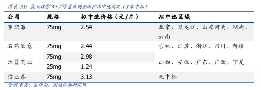 在2019年“4+7”帶量采購全國擴(kuò)圍中,樂普的氯吡格雷、阿托伐他汀鈣雙雙中標(biāo)。根據(jù)華西證券測算,氯吡格雷降價(jià)幅度分別為56%/52%(25mg/75mg規(guī)格)、阿托伐他汀降價(jià)幅度分別為90%/91%(10mg/20mg規(guī)格)。