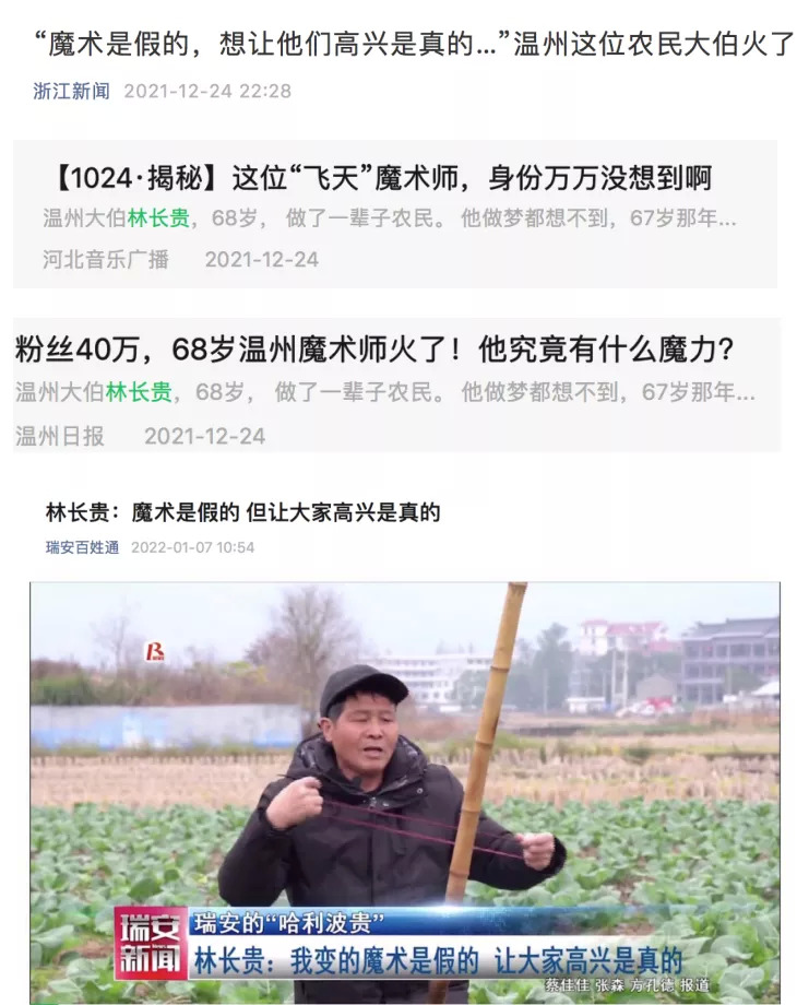 最近大火的田坎魔術(shù)師——林長(zhǎng)貴,就在浙江的農(nóng)村小鎮(zhèn)里揮起了這一記重錘。