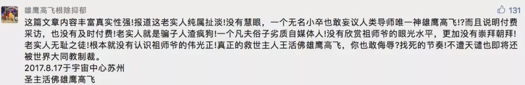 他自稱建立了世界大同教,是宇宙唯一神、人類導(dǎo)師,是傳說(shuō)中即將掌控全球的紫衣圣人,但骨子里是“民科”和“精神病”之間反復(fù)橫跳的中華奇人。為了更方便圍觀他的“創(chuàng)作”,激發(fā)他更強(qiáng)烈的“創(chuàng)作欲望”,以“硬漢”為代表的熱心網(wǎng)友們特意運(yùn)營(yíng)了幾個(gè)專門的微信群,接受其高師、蘇州圣主的“自我設(shè)定”,心甘情愿地成為“信徒”。