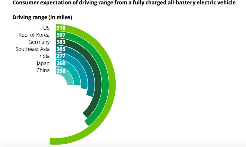 由此延伸,另一項(xiàng)有趣的調(diào)查是“各國(guó)消費(fèi)者認(rèn)為單次充電續(xù)航達(dá)到多少才滿意?”