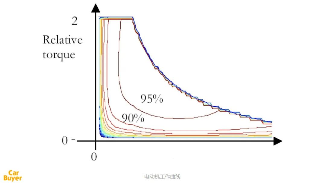 電動機的與內(nèi)燃機的動力特性則完全不同,原因在于電動機的“基準(zhǔn)轉(zhuǎn)速”這個概念,即電動車的基準(zhǔn)轉(zhuǎn)速通常維持在1500-2000轉(zhuǎn)不等,相當(dāng)于燃油車的最佳效率區(qū)間。這意味著電動車在中低行駛時的效率更高、能耗相對最低,而當(dāng)車速越快、電機的轉(zhuǎn)速拉升到更高的位置,相應(yīng)的能耗也越高,續(xù)航自然也越少。