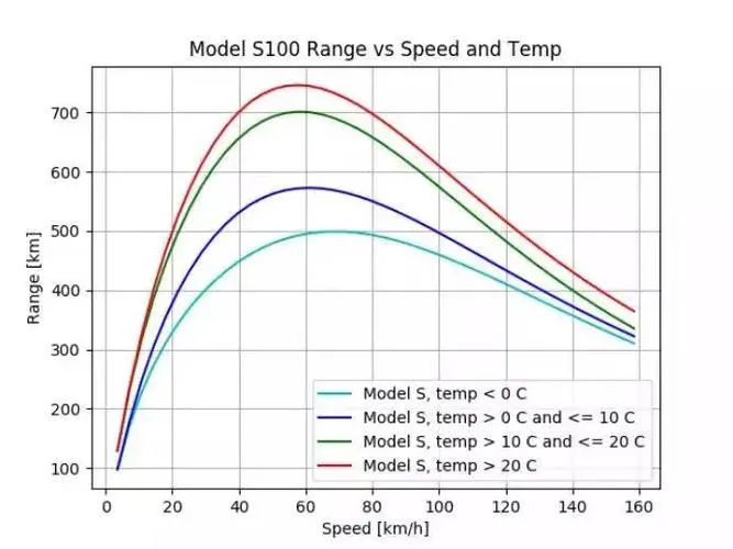 對此,特斯拉曾做過一組專項數(shù)據(jù)統(tǒng)計,測試結(jié)果表明60km/h是特斯拉能實現(xiàn)最長續(xù)航的時速值,若平均時速越高,車輛實際續(xù)航會階梯型遞減。