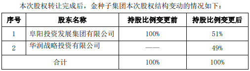 金種子酒表示,本次交易不會導(dǎo)致公司控股股東和實際控制人變更,公司控股股東仍為金種子集團、實際控制人仍為阜陽市國資委。