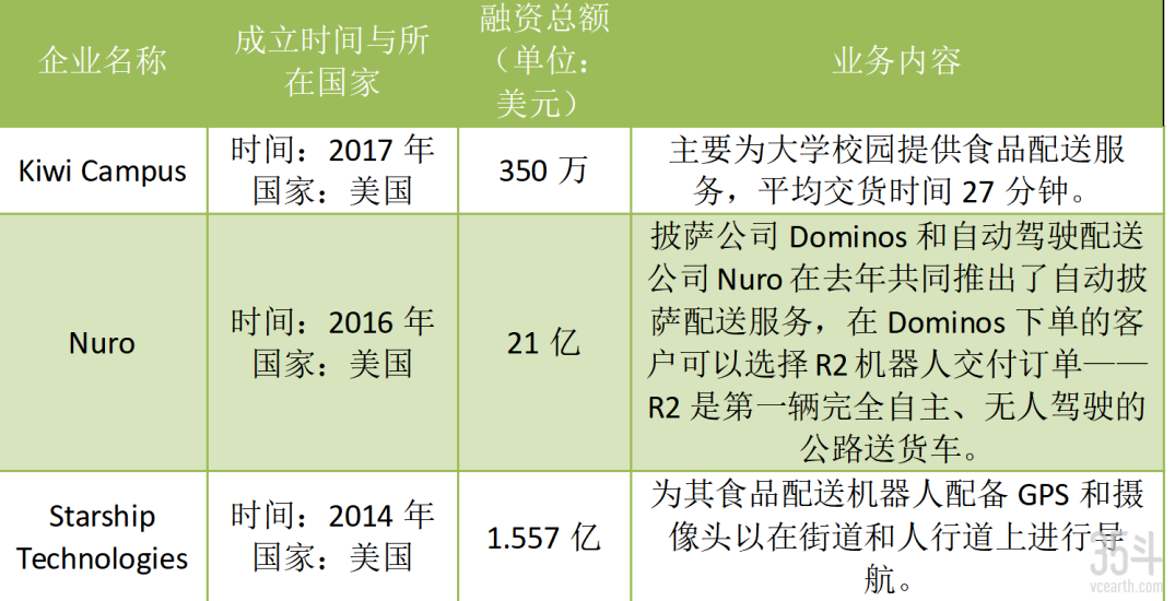 表1:機(jī)器配送領(lǐng)域公司(部分) 數(shù)據(jù)來源:crunchbase、公司官網(wǎng)