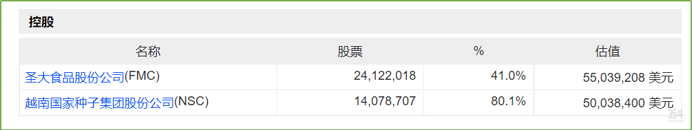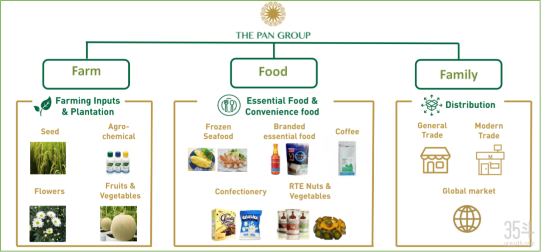 PAN Group是一家位于越南的食品加工公司,成立于1998年,并于今年4月份公開上市。該公司的業(yè)務(wù)主要分為兩部分:食品和農(nóng)業(yè)。這樣的產(chǎn)業(yè)結(jié)構(gòu)與其控股公司成分有著直接關(guān)聯(lián)。PAN Group的第一大股東是越南國家種子集團(tuán)股份公司(NSC),第二大股東則是越南國內(nèi)頭部食品公司圣大食品(FMC)。