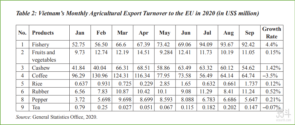 歐盟是世界第二大進(jìn)口市場,也是越南出口的大市場。越南對(duì)歐盟市場的農(nóng)產(chǎn)品出口占該國農(nóng)產(chǎn)品出口總額的比例一直穩(wěn)定在13%至19%,出口到歐盟的農(nóng)產(chǎn)品包括咖啡、辣椒、蔬菜和水果等。