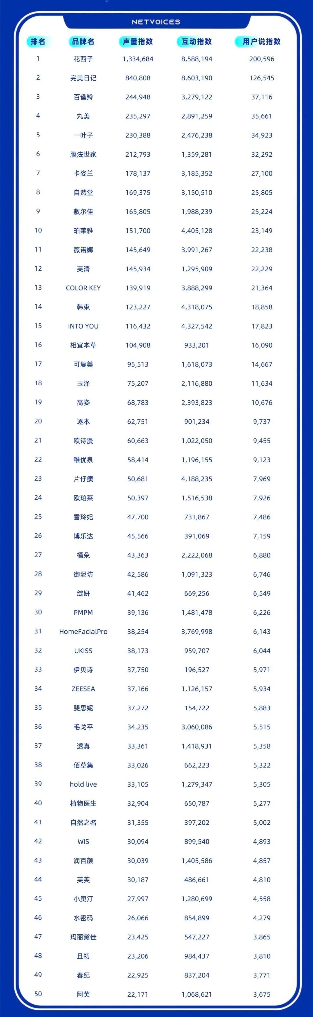 圖片為用戶說發(fā)布的“最受用戶偏愛國妝品牌TOP50榜單”