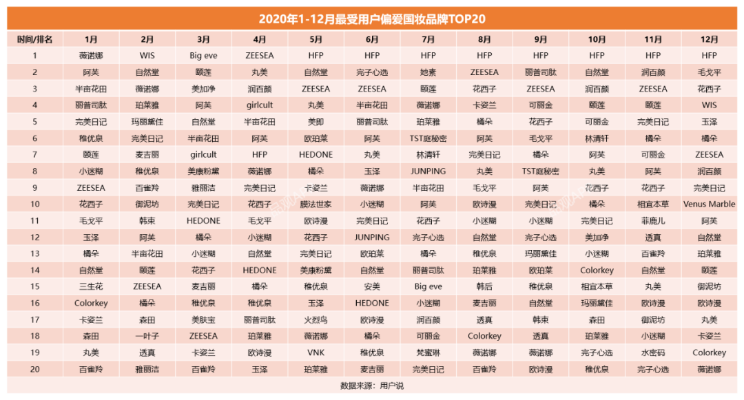 1、花西子全年霸榜,老牌國貨強勢崛起。