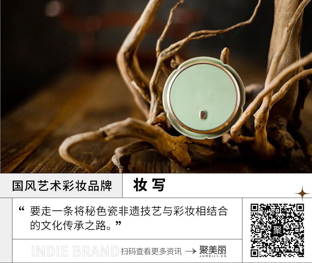妝寫的品牌名來自「以瓷盛妝 敘寫風(fēng)華」,正如其名,品牌全線產(chǎn)品的外包裝都采用青瓷(秘色瓷)制成。