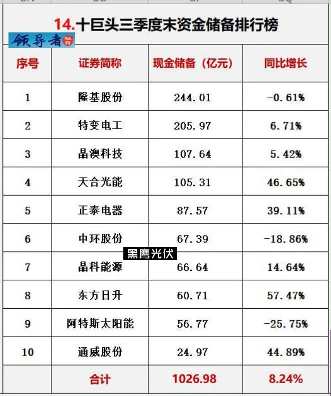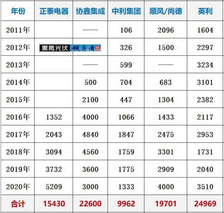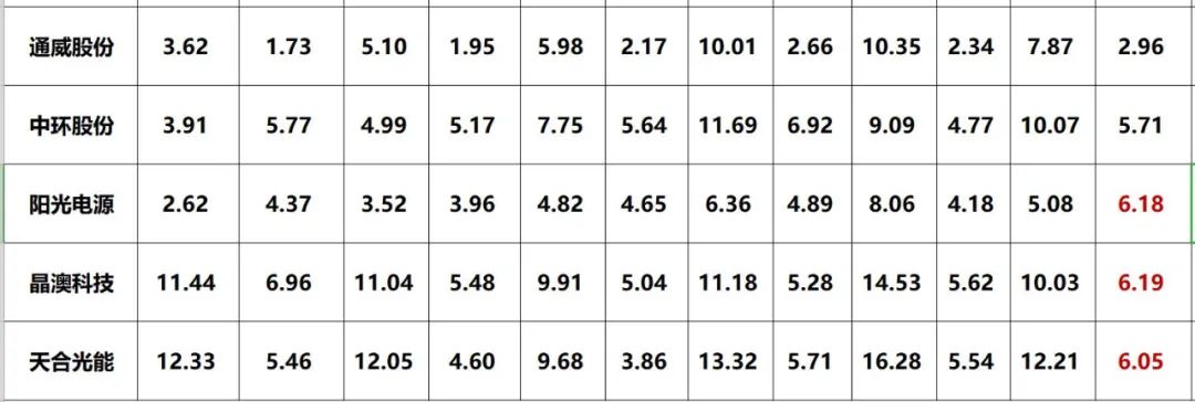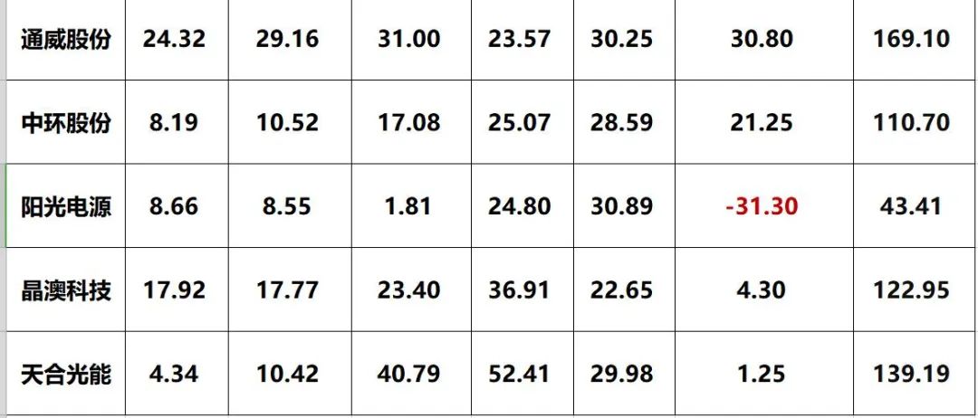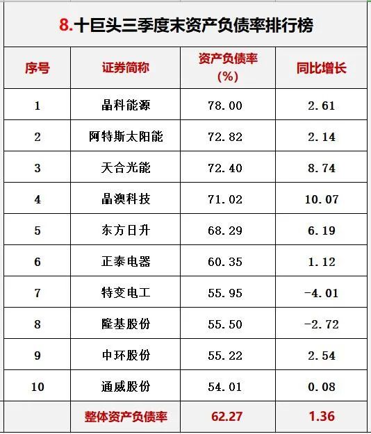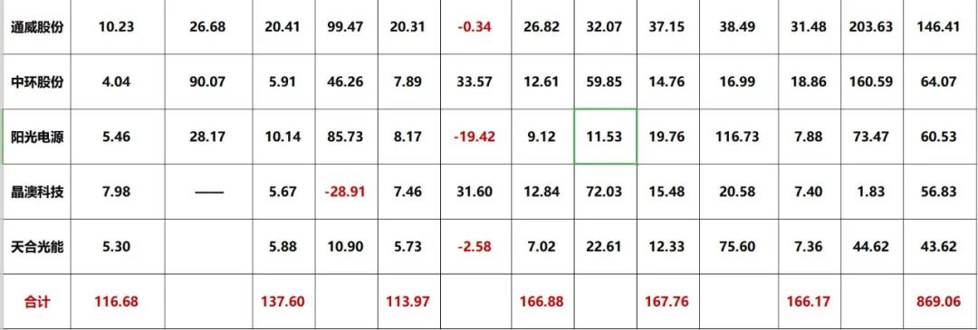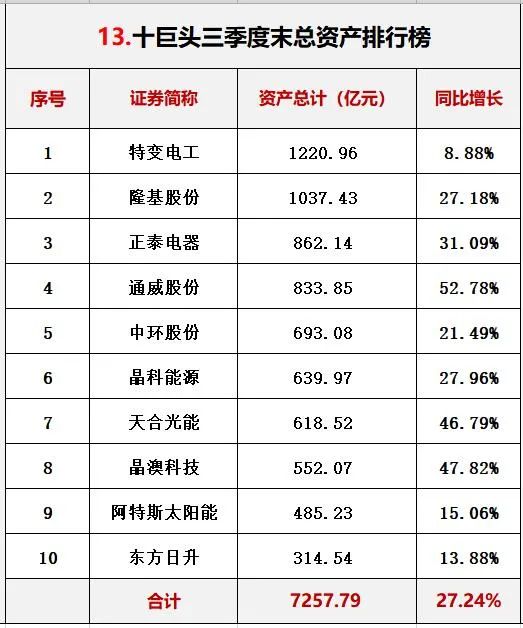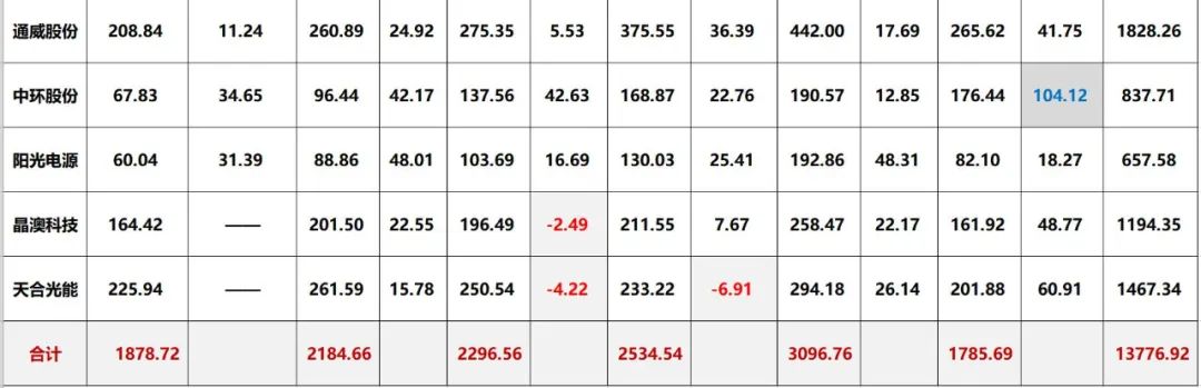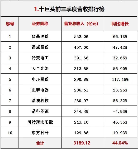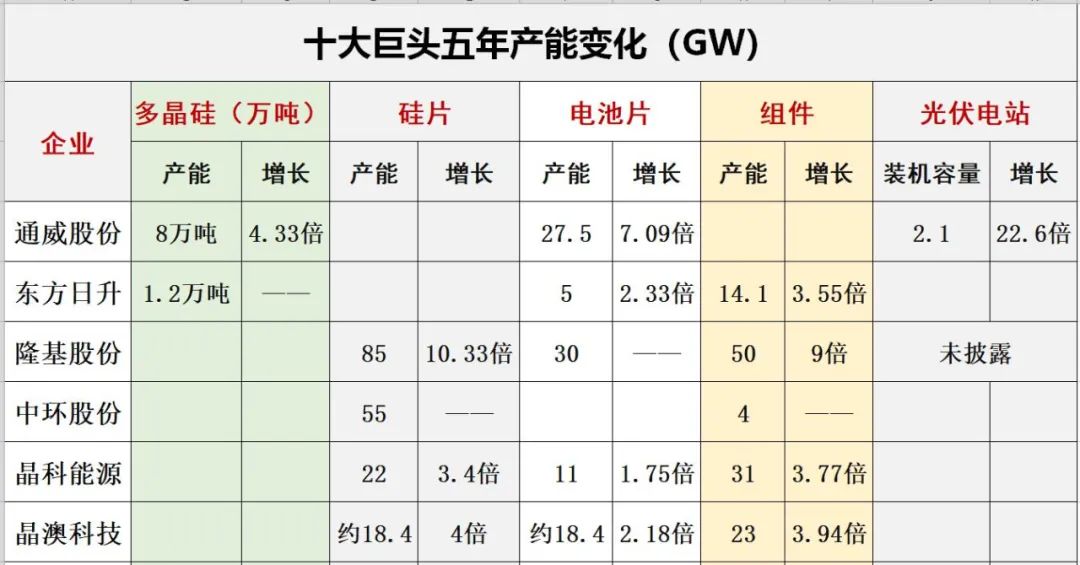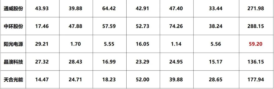 三.光伏巨頭2021三季報能力對比排行